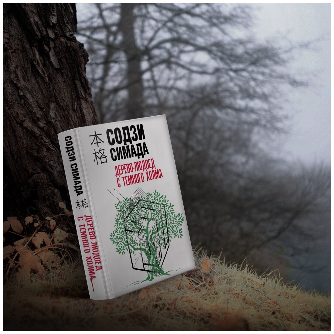 «Дерево-людоед с Темного холма» — четвертая книга в серии про сыщика Киёси Митараи, который рассказывает историю об убийстве и расследовании своему другу, писателю Кадзуми Исиоке. Тот, в свою очередь, пишет об этом книгу. Это уже история в истории, основной детектив, а вокруг него — «рамка» из разговоров детектива и писателя, очевидца и слушателя. Но все сложнее, все вообще очень сложно, потому что еще основная история делится на параллельное повествование в разном времени. Сорок шестой, первый год после войны, и восемьдесят четвертый, настоящее. Убитый родился в сорок шестом, но это еще не все. Ответ на вопрос, кто убил человека, чье тело нашли под зловещим деревом на холме, начинается задолго до его рождения…