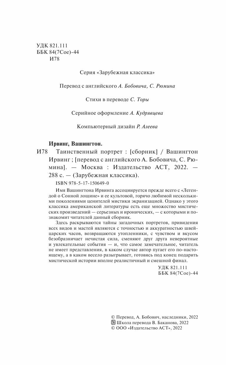 Книга: Таинственный портрет (Вашингтон Ирвинг); АСТ, Neoclassic, 1807, 1819, 1822, 1824