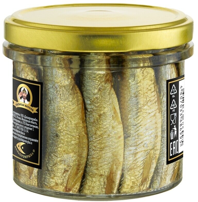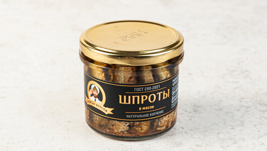 | Состав | рыба (килька) копченая, масло подсолнечное рафинированное, соль поваренная пищевая массовая доля рыбы не менее 70% |