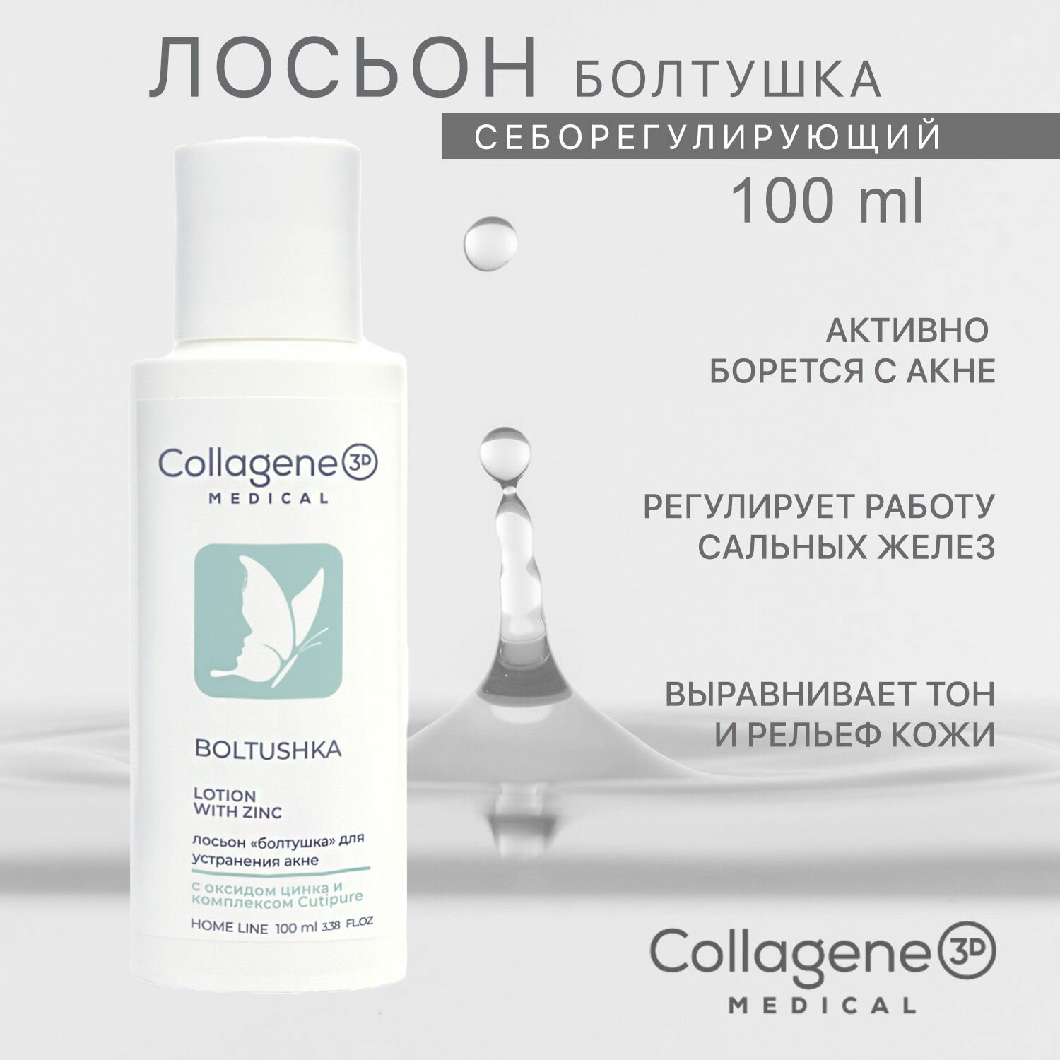 Medical Collagene 3D Лосьон для лица с цинком Boltushka100 мл (Medical Collagene 3D ) (ЭХ99989430145)