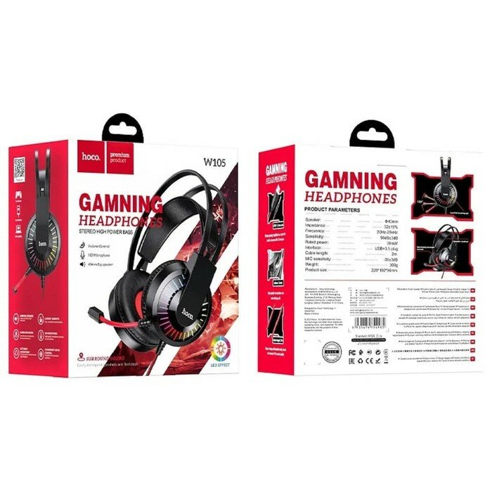 - Наушники Hoco W105 полноразмерные игровые с подсветкой