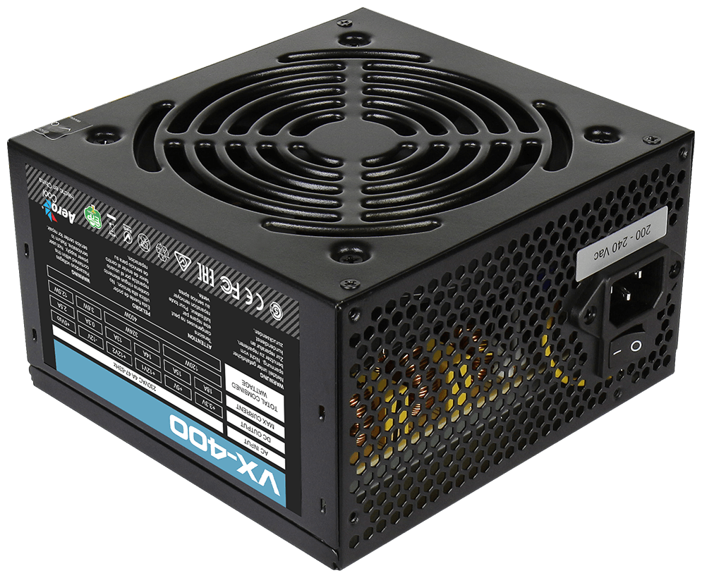 Aerocool W - это эффективный, надёжный и недорогой блок питания с низким уровнем шумов и помех. Блоки питания линейки VX - самые доступные в ассортименте Aerocool и предназначены для систем начального уровня. Они собраны из высококачественных компонентов и обеспечивают стабильное и надёжное питание для всего системного блока. Хотя устройства линейки VX предназначены для сборки систем начального уровня, Aerocool снабдила их всем необходимым.