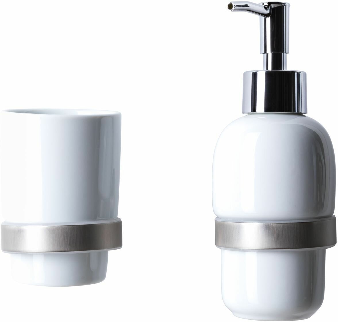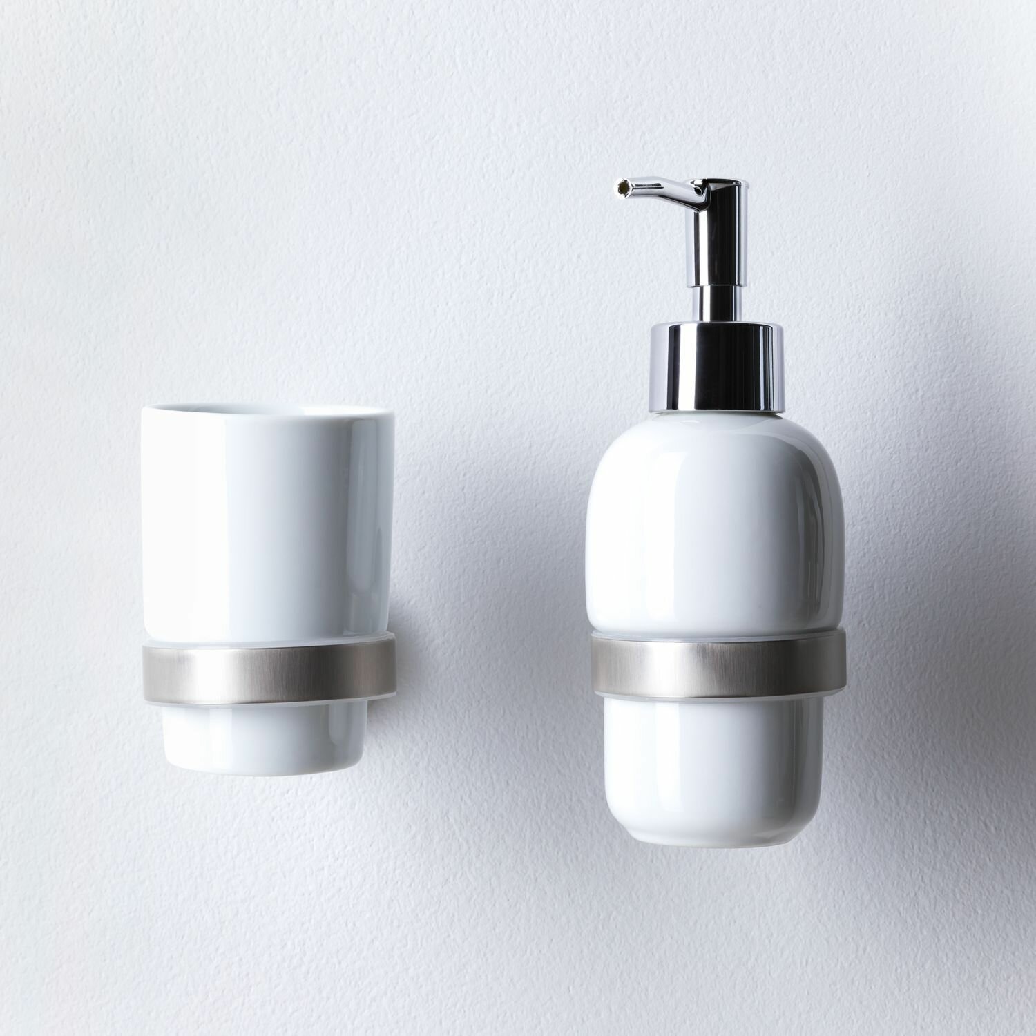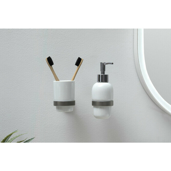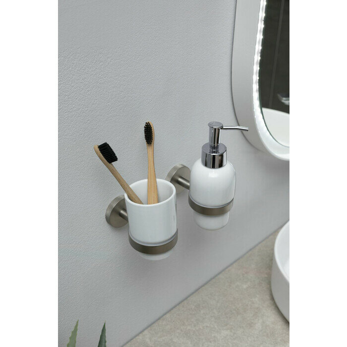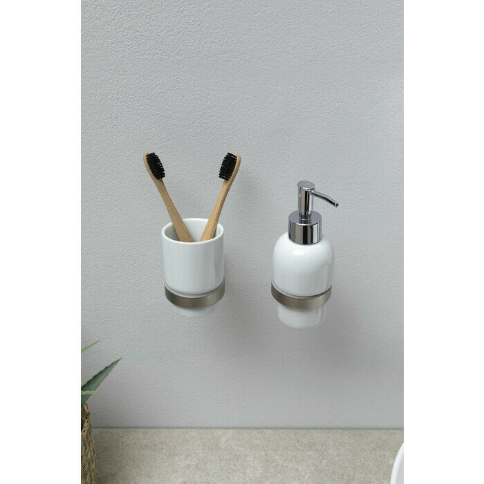 Стакан Allen Brau PRIORITY . Материал: керамика, латунь. Цвет: белый, браш.никель. Ширина: 6.7см. Высота: 9.5см. Глубина: 1.07см