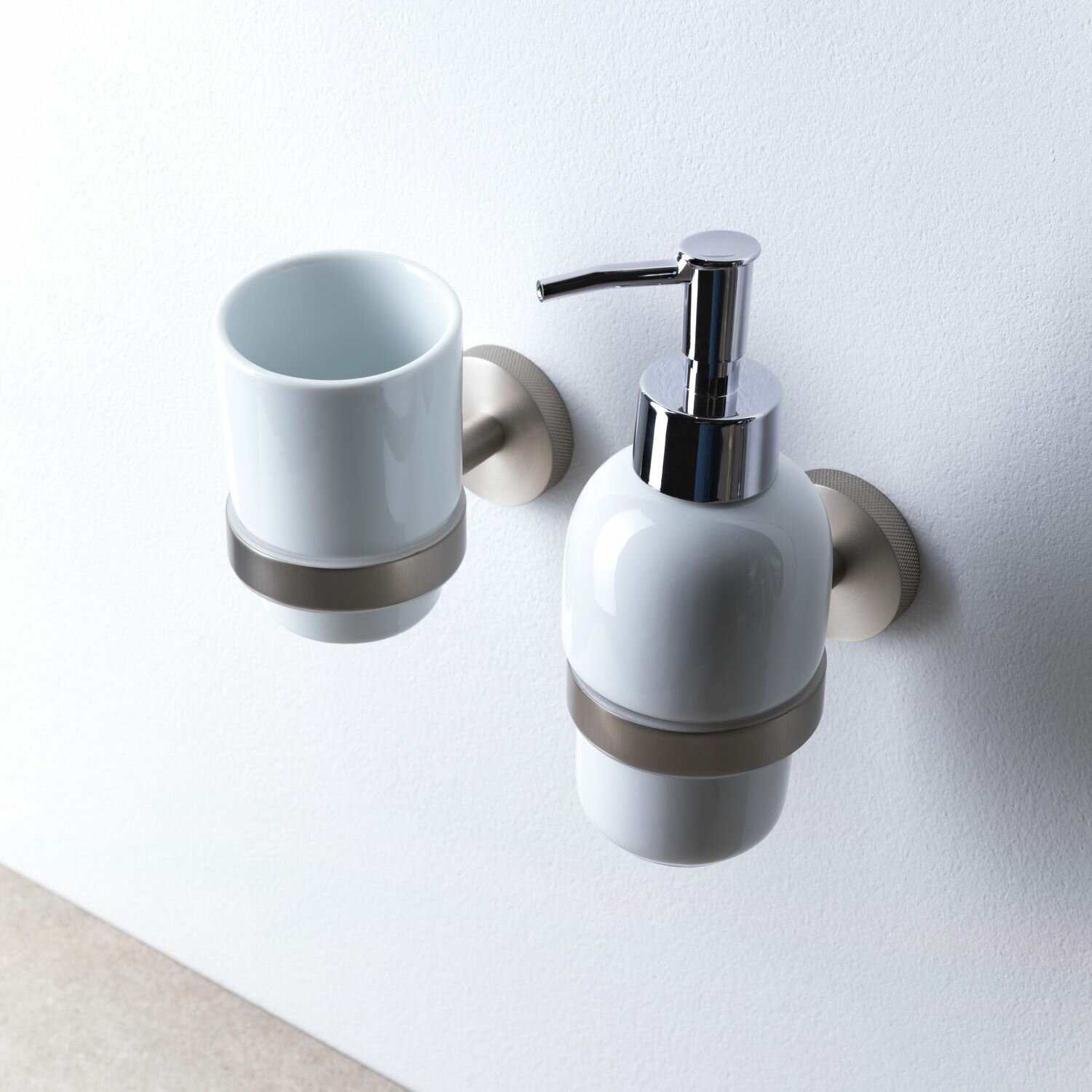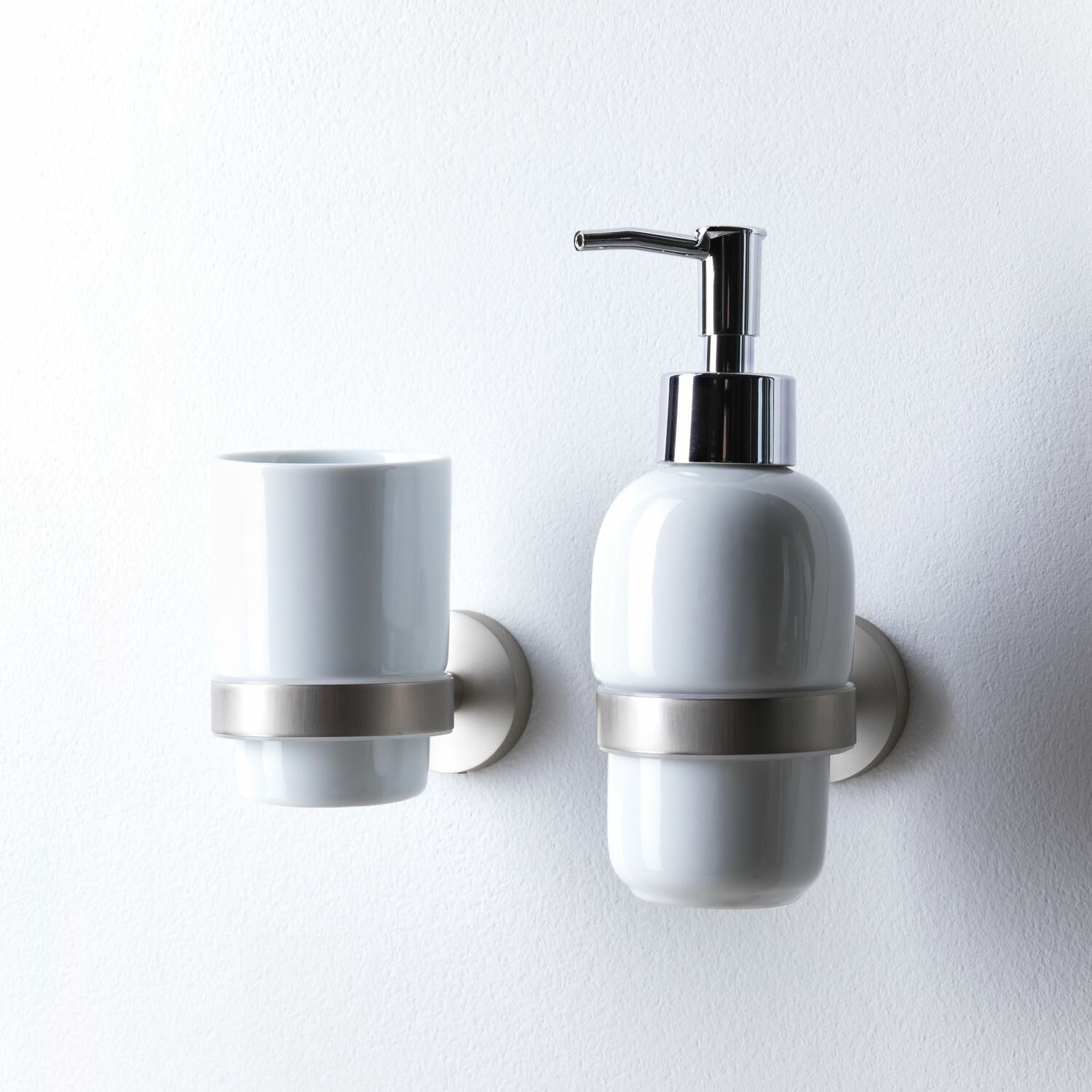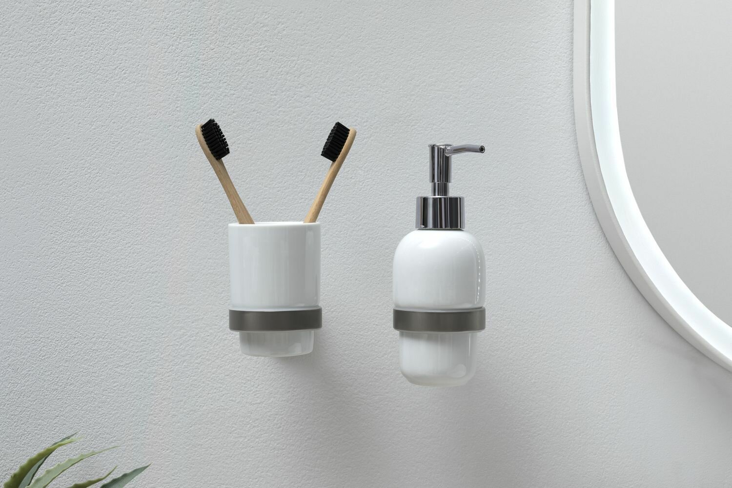 Стакан Allen Brau PRIORITY . Материал: керамика, латунь. Цвет: белый, браш.никель. Ширина: 6.7см. Высота: 9.5см. Глубина: 1.07см