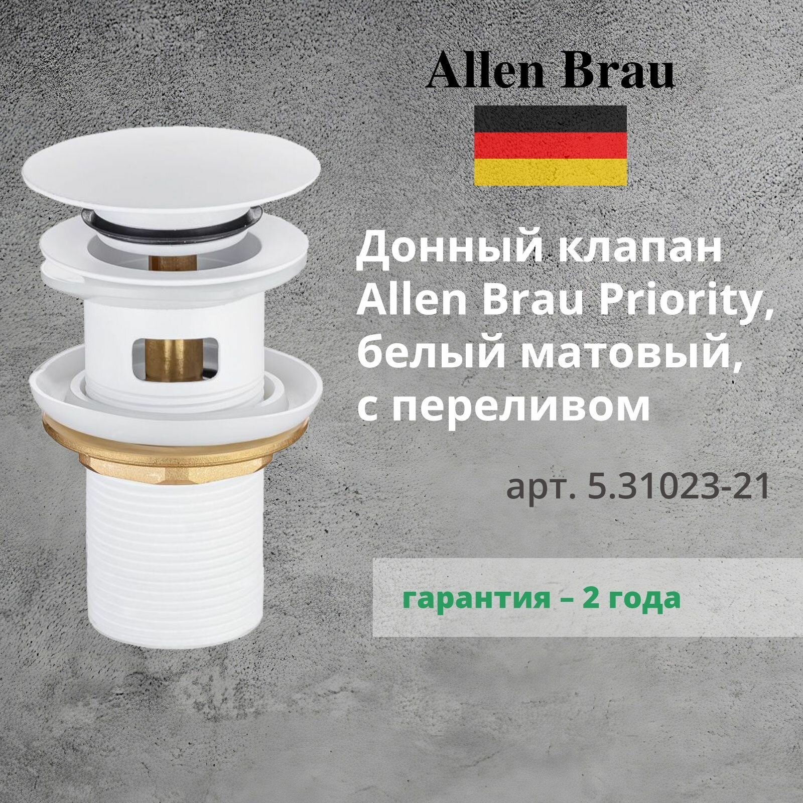 Донный клапан для раковины Allen Brau Priority Round с переливом белый матовый 5.31023-21