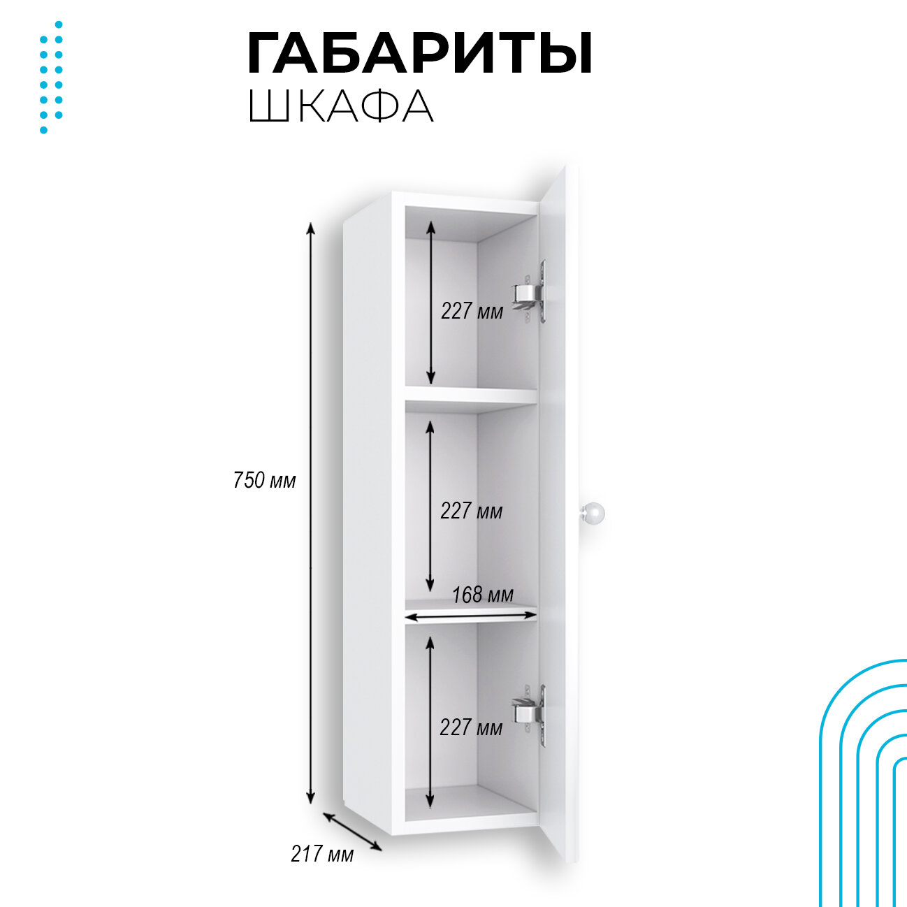 Шкаф для ванной Runo Кредо 00-00001148. Шкаф навесной с одной распашной дверкой, за которой - две встроенные полки. Петли со встроенным доводчиком, ручка - 1шт, навесы 2шт. Универсальный.