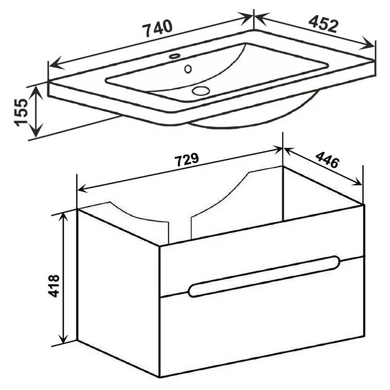 Тумба под раковину Runo Парма 00000001140 Парма 73х45 1 ящик, подвесная, белая (00000001140)