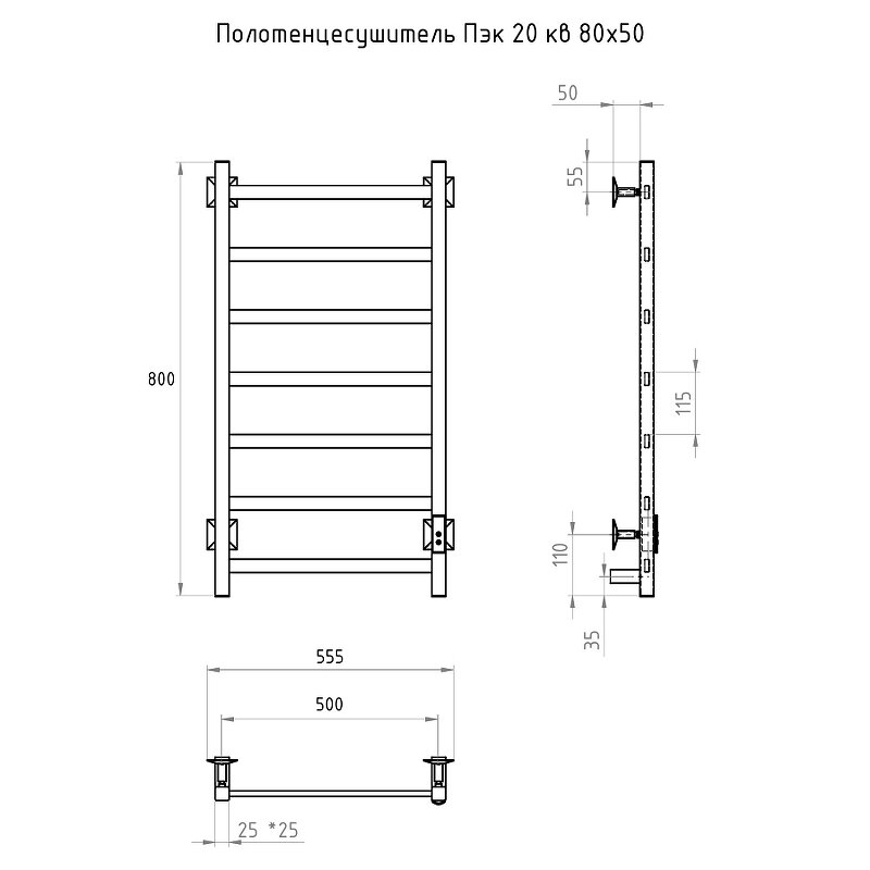 Полотенцесушитель электрический Тругор кв 80х50 черный ВГП Пэк сп 20