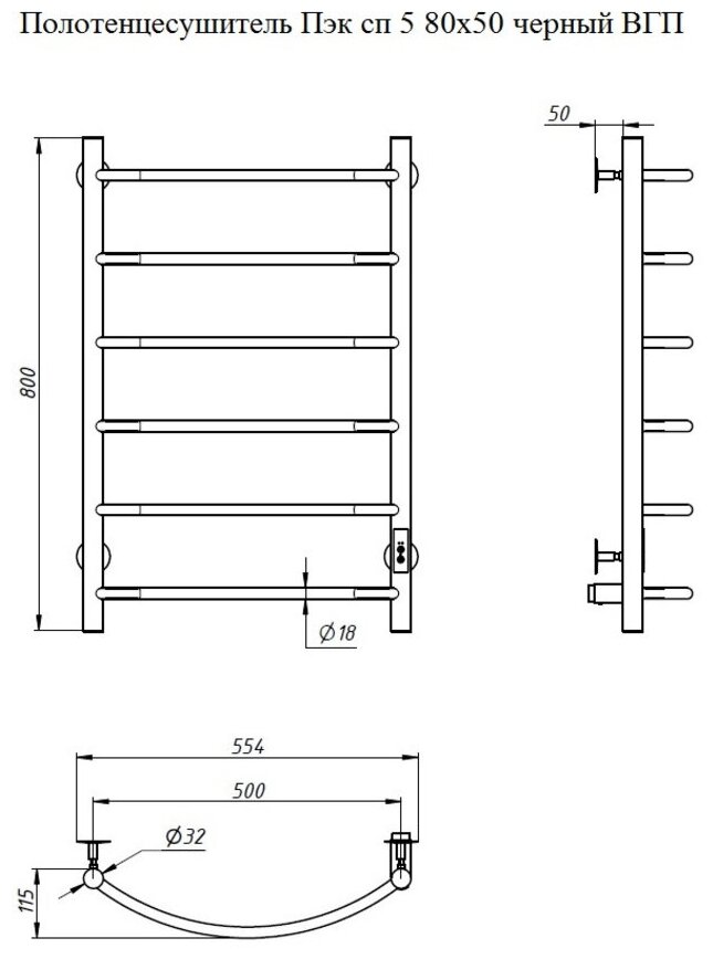 Полотенцесушитель электрический Тругор 80х50 черный ВГП Пэк сп 5