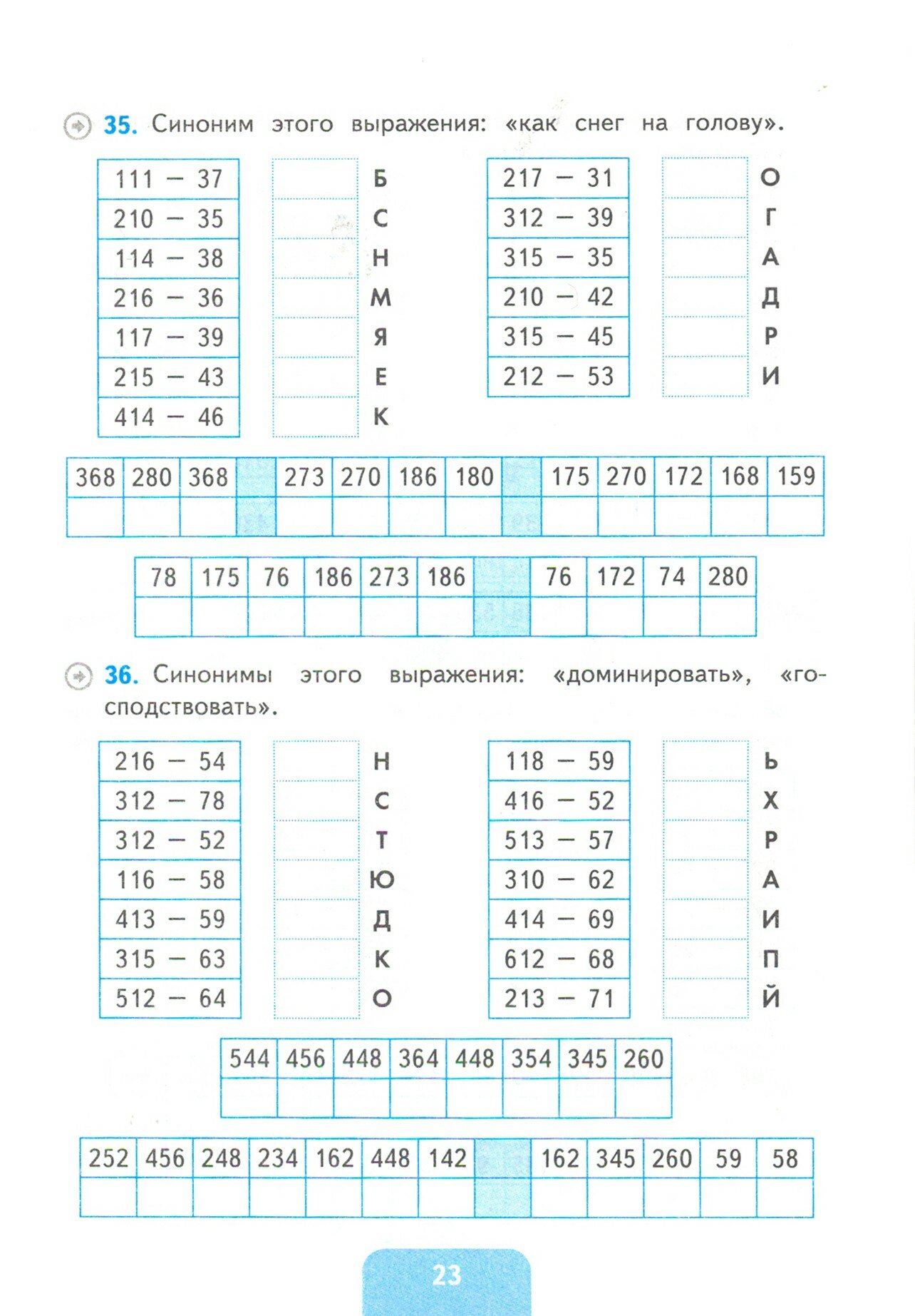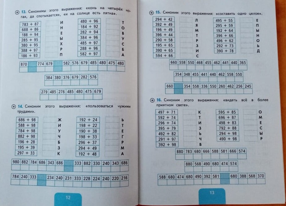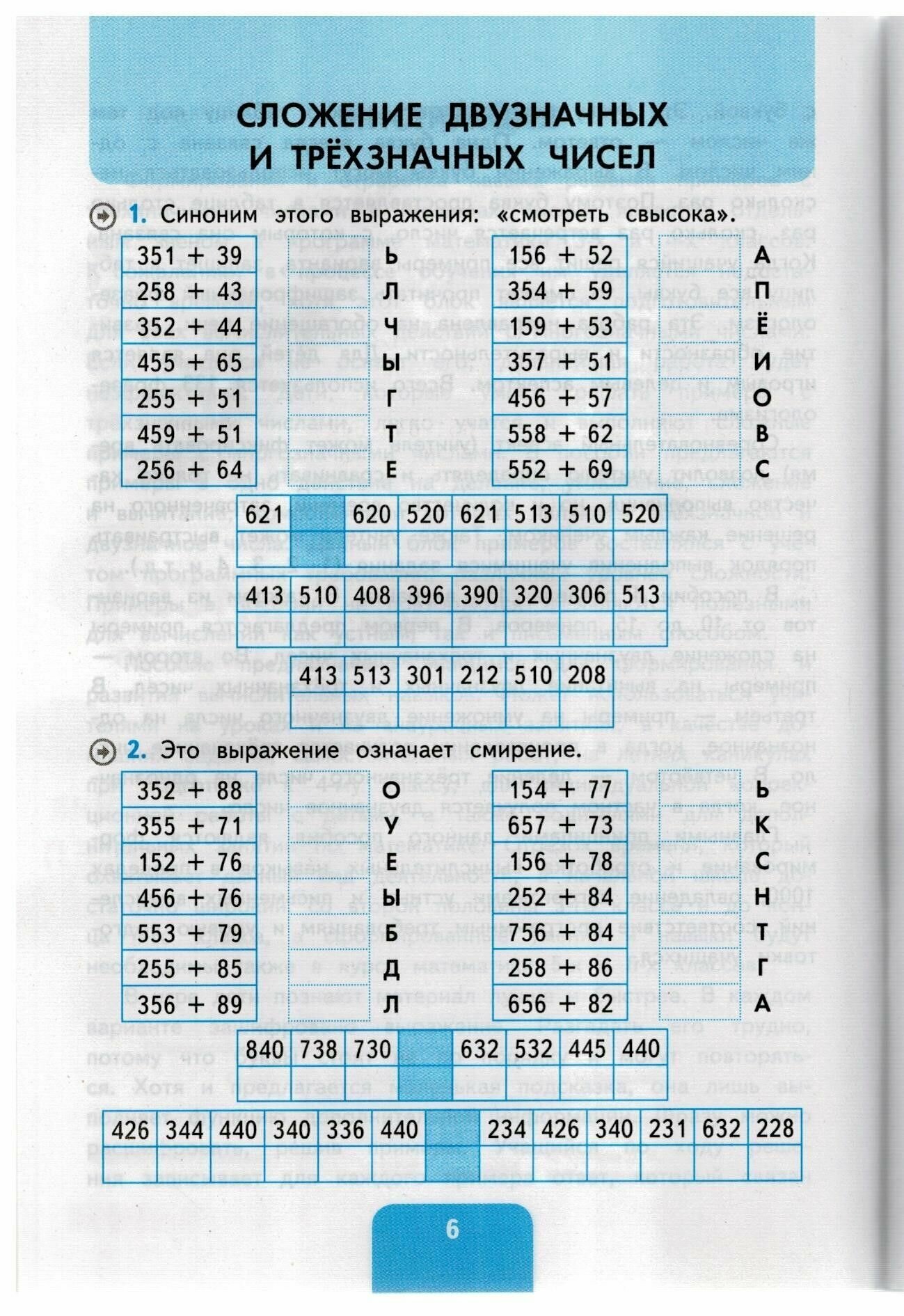 Данное пособие полностью соответствует федеральному государственному образовательному стандарту (второго поколения) для начальной школы. Данный тренажёр предназначен для формирования и развития вычислительного навыка решения примеров с двузначными и трёхзначными числами в пределах тысячи в 3-4-х классах. Решив примеры, учащиеся смогут прочитать зашифрованные афоризмы. Работа с афоризмами направлена на обогащение, развитие образности и выразительности речи. Пособие предназначено учащимся, учителям начальной школы и родителям, которые хотят помочь своим детям преодолеть трудности в освоении программы.