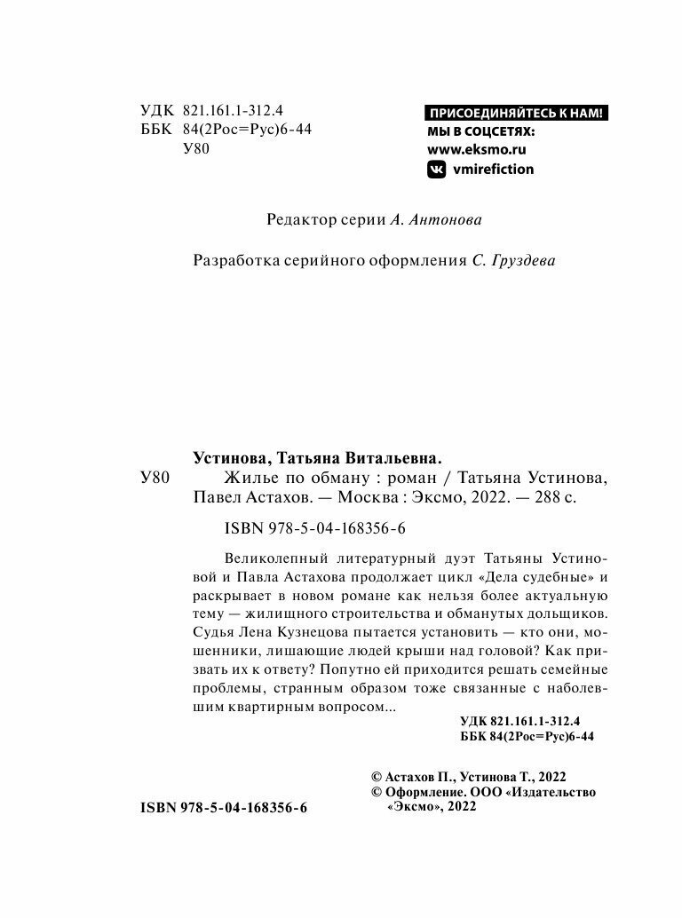Книга: Жилье по обману (Устинова Татьяна Витальевна, Астахов Павел Алексеевич); ООО "Издательство "Эксмо", 2022
