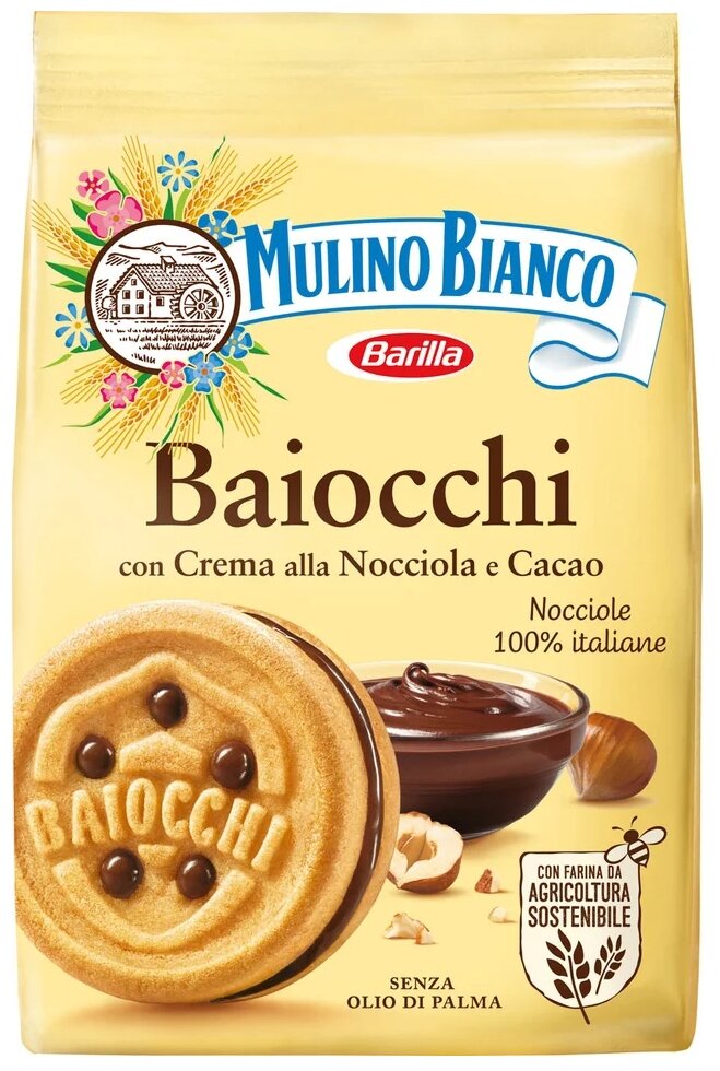 Сервис сравнения цен СкидкаГИД предлагает сравнить цены на товар «Печенье Mulino Bianco Baiocchi сандвичное сахарное с какао-ореховым кремом 260г»