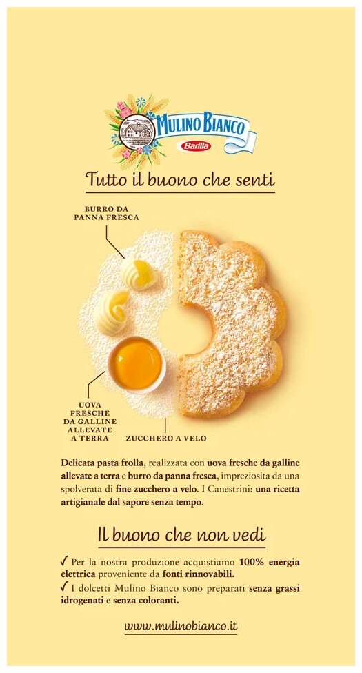 | Особенности | Печенье из Италии готовится по традиционному рецепту из ингредиентов высокого качества и не содержит ГМО. |