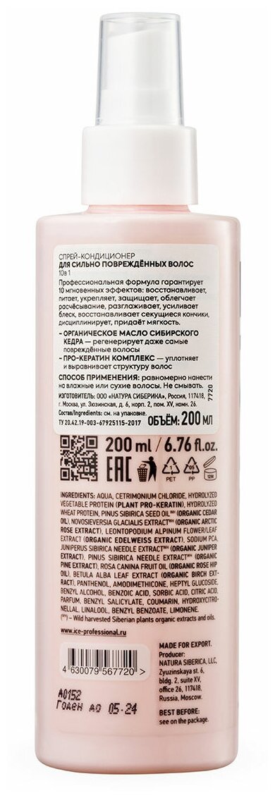 I`CE Professional Cпрей-кондиционер для сильно повреждённых волос 200 мл (I`CE Professional ) I'CE Professional (ЭХ99989414788)