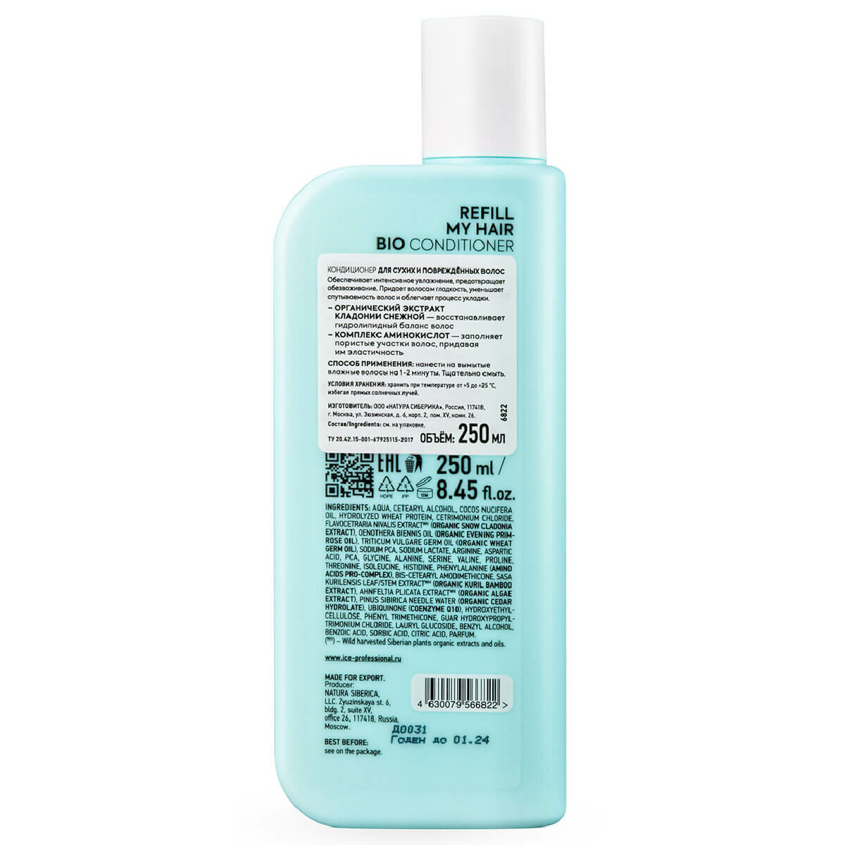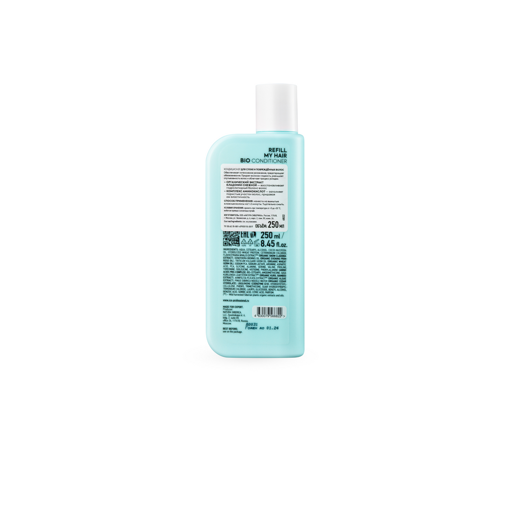 | Состав | aqua; cetearyl alcohol; cocos nucifera oil; mentha arvensis leaf extract (organic wild mint extract); laminaria saccharina extract wh (organic laminaria extract); eleutherococcus senticosus extract wh (organic siberian ginseng extract); cetrimonium chloride; behentrimonium chloride; dimethicone; dimethiconol; allantoin; flavocetraria nivalis extract wh (organic snow cladonia extract); dasiphora fruticosa extract (organic kuril tea extract); phenyl trimethicone; guar hydroxypropyltrimonium chloride; lauryl glucoside; salvia sclarea oil (organic clary sage essential oil); melaleuca alternifolia leaf oil (organic tea tree essential oil); menthol; taurine; benzyl alcohol; benzoic acid; sorbic acid; citric acid; parfum; linalool; benzyl salicylate.(wh) - wild harvested siberian plants organic extracts |