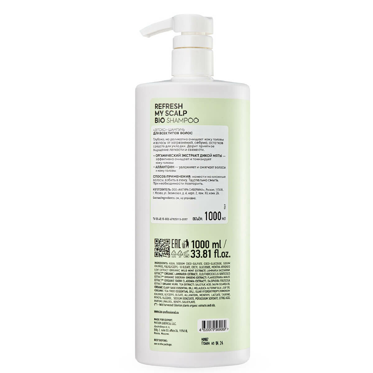 Состав: aqua, sodium coco-sulfate, coco-glucoside, sodium chloride, polyglyceryl- 10 oleate, decyl glucoside, mentha arvensis leaf extract (organic wild mint extract), laminaria saccharina extract wh (organic laminaria extract), eleutherococcus senticosus extract wh (organic siberian ginseng extract), flavocetraria nivalis extract wh (organic snow cladonia extract), dasiphora fruticosa extract (organic kuril tea extract), salicylic acid, salvia sclarea oil (organic clary sage essential oil), melaleuca alternifolia leaf oil (organic tea tree essential oil), guar hydroxypropyltrimonium chloride, glyceryl oleate, allantoin, menthyl lactate, taurine, benzyl alcohol, sodium benzoate, potassium sorbate, citric acid, parfum, linalool, benzyl salicylate