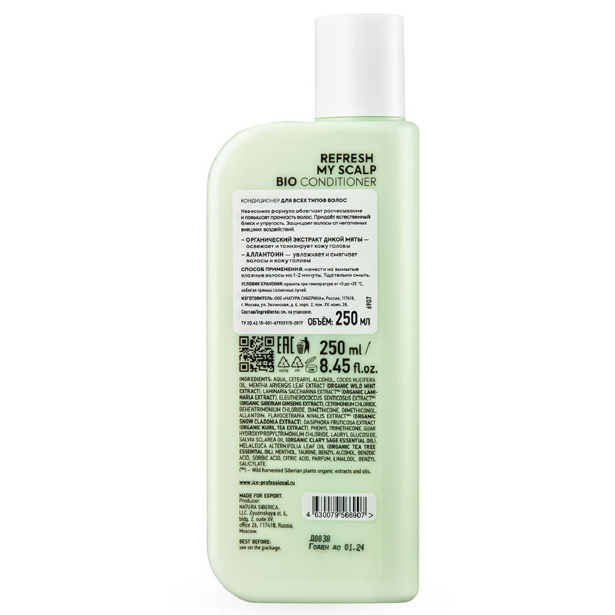 | Состав | aqua; cetearyl alcohol; cocos nucifera oil; mentha arvensis leaf extract (organic wild mint extract); laminaria saccharina extract wh (organic laminaria extract); eleutherococcus senticosus extract wh (organic siberian ginseng extract); cetrimonium chloride; behentrimonium chloride; dimethicone; dimethiconol; allantoin; flavocetraria nivalis extract wh (organic snow cladonia extract); dasiphora fruticosa extract (organic kuril tea extract); phenyl trimethicone; guar hydroxypropyltrimonium chloride; lauryl glucoside; salvia sclarea oil (organic clary sage essential oil); melaleuca alternifolia leaf oil (organic tea tree essential oil); menthol; taurine; benzyl alcohol; benzoic acid; sorbic acid; citric acid; parfum; linalool; benzyl salicylate. (wh) - wild harvested siberian plants organic extracts |