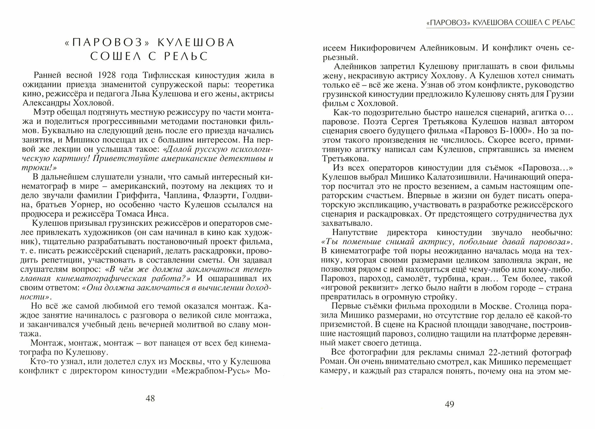 Эта книга о судьбе кинорежиссёра Михаила Калатозова. О времени, в котором он жил и творил. О кино, которое было главным делом всей его жизни. О людях - одни из которых ему помогали, другие мешали (ну, а как без них?).