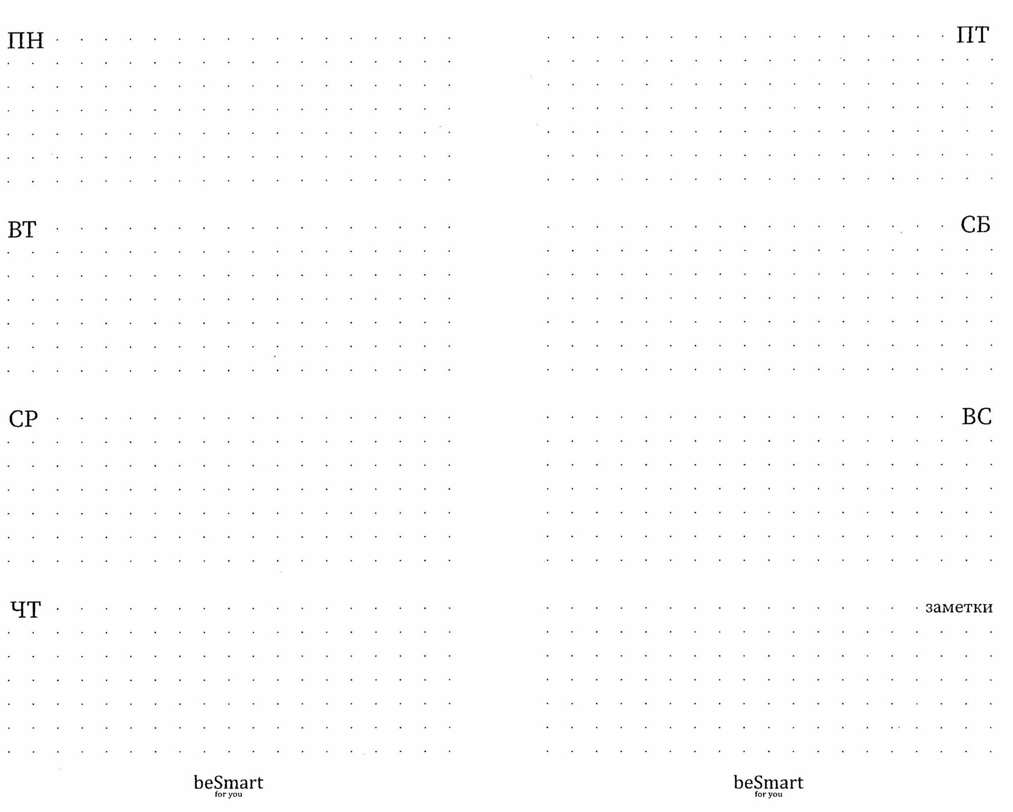 Обложка: картон 230 г/м2, печать 4+4, ламинация, микротекстурирование. Скрепка. Внутренний блок: недатированный еженедельник, неделя на двух страницах, бумага 65 г/м2, печать 1+1.