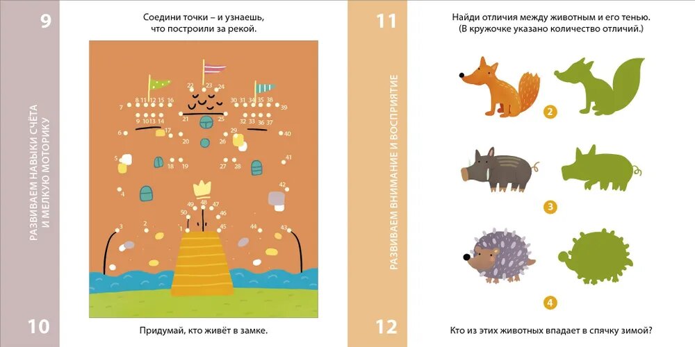 - Задания рассчитаны на детей от пяти лет и направлены на развитие логического, образного и пространственного мышления, внимания и речи, воображения и фантазии, мелкой моторики и зрительного восприятия, навыков счёта и письма.