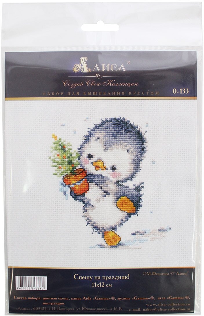 Вышивание - популярное и увлекательное хобби, которое дарит радость и умиротворение. Набор для вышивания - самый удобный вариант вышивок, как для начинающих, так и для опытных мастеров. Ведь набор содержит все необходимые материалы для создания настоящего шедевра. Отличный результат гарантирован! Вышивке всегда можно найти практическое применение. А вышитая собственноручно готовая картина станет отличным подарком близкому человеку. Она будет радовать долгие годы, даря любовь и тепло. Набор для вышивания "Алиса" 0-133 "Спешу на праздник" 11 х 12 см. Тип ниток: хлопковые. Заполнение: Частичное. Количество цветов: 16. Праздник: Новый Год. Схема: Цветная. Тема: Детские сюжеты. Техника исполнения: Счетный крест. Тип канвы/ткани: К04 Aida №14 "Gamma". Цвет канвы/ткани: белый. Размер готовой работы: 11 x 12 см.