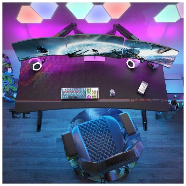 | Прочие особенности | Eureka Gaming учитывает ваши различные потребности, поэтому вы можете сосредоточиться на таких важных вещах, как учеба, работа, игры или отдых. EUREKA GIP 60 имеет широкую 60-дюймовую столешницу с поверхностью в стиле "карбон", что позволяет разместить на столе несколько игровых мониторов, Xbox, PS4 и другие ваши игровые девайсы. Благодаря специальной системе управления кабелями, на вашем столе никогда не будет лишних проводов. Столешница оснащена несколькими слотами для укладки кабелей под столом, освобождая пространство для игровых девайсов.., Преимущества, , Поставляется в комплекте с премиальным ковриком для мыши., Оснащен люверсами для управления кабелями., Уникальная I-образная опорная рама CRS покрыта металлическим покрытием для создания текстурной отделки., Широкая столешница 60 дюймов, Держатель геймпадов с четырьмя USB-портами для зарядки, двойной крычок для наушников, подстаканник., Легкий в сборке, перемещении, эксплуатации. |