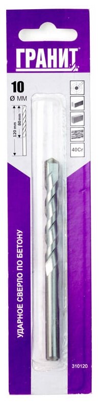сверло по бетону ударное 10х120/80мм гранит 310120