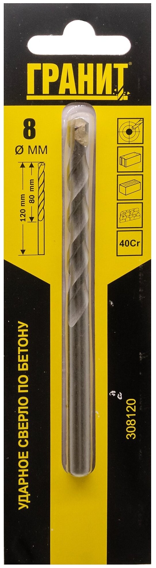 сверло по бетону ударное 8х120/80мм гранит 308120