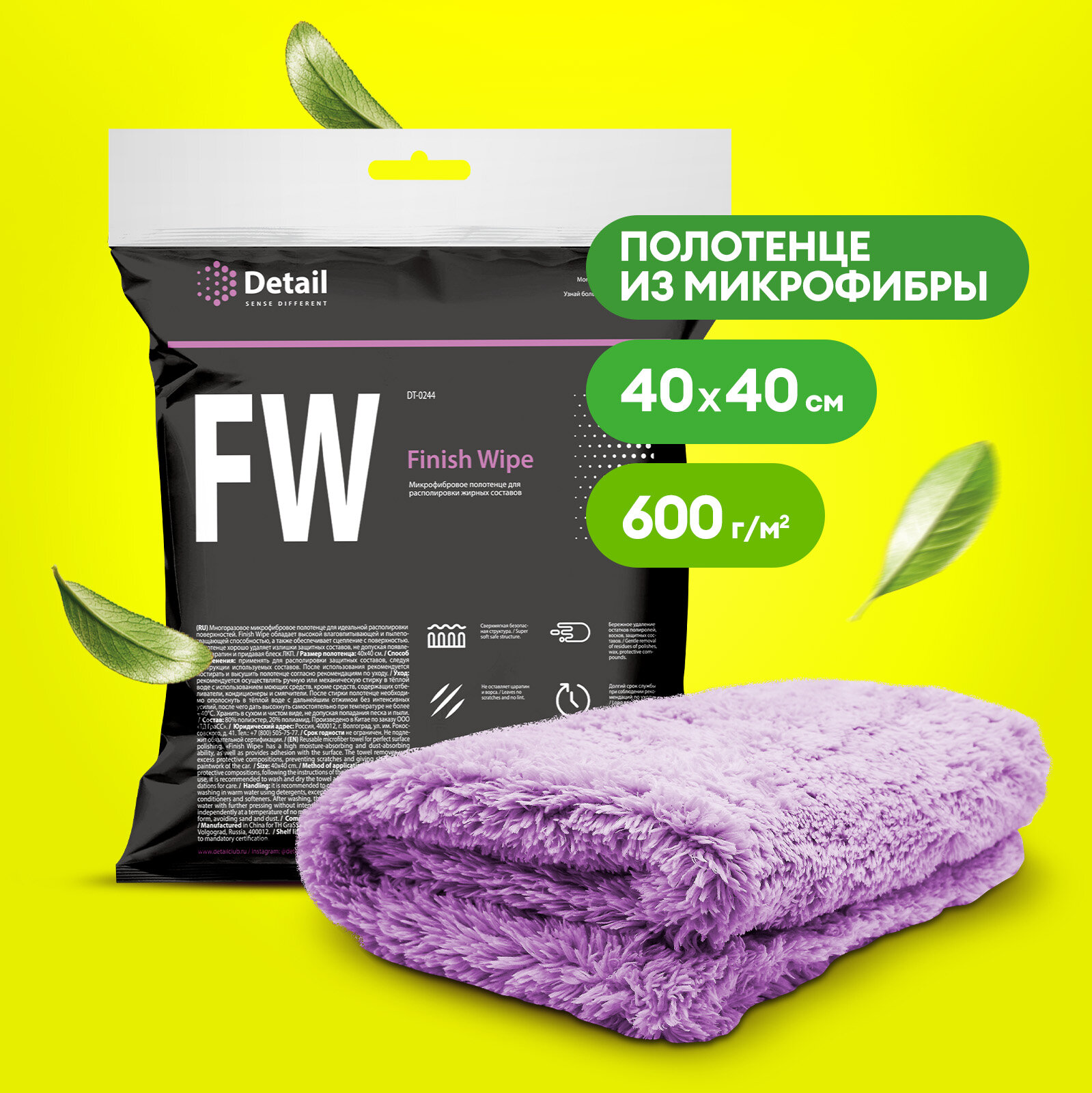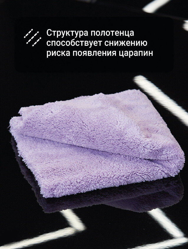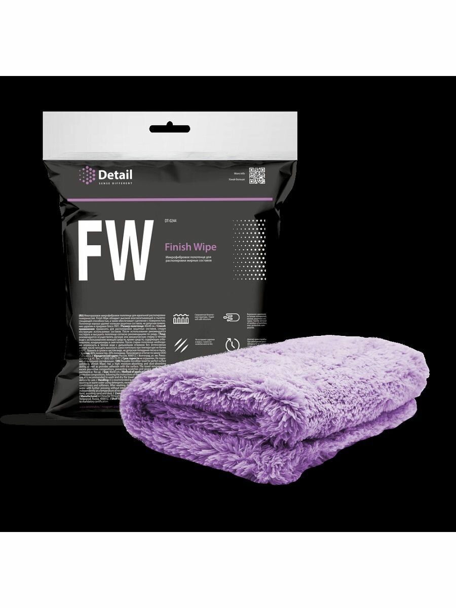 Finish Wipe обладает высокой влаговпитывающей и пылепоглащающей способностью, а также обеспечивает сцепление с поверхностью. Полотенце хорошо удаляет излишки защитных составов, не допуская появление царапин и придавая блеск ЛКП. Размер полотенца: 40х40 см. Плотность: 600 г/м2.