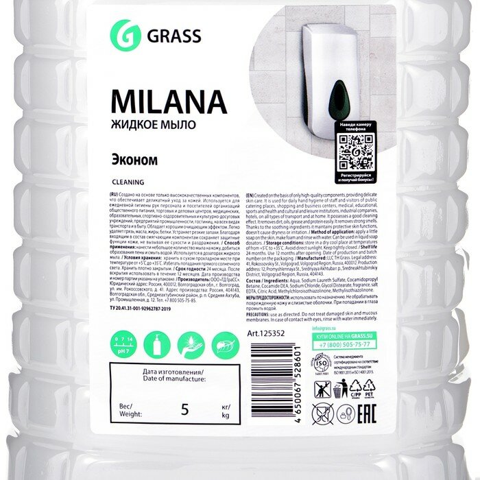 Жидкое мыло "Milana эконом" 5кг Grass 125352