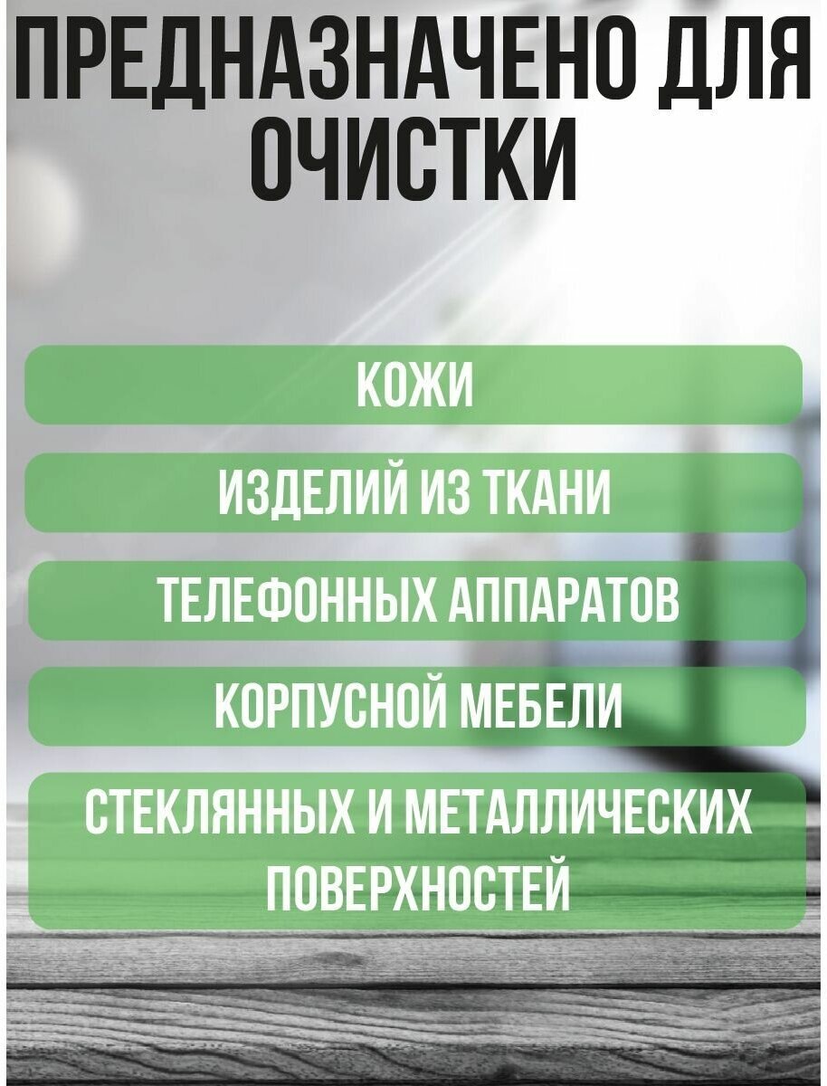 Концентрированное универсальное моющее средство. Может применяться для очистки кожи, изделий из ткани, телефонных аппаратов, корпусной мебели, стеклянных и металлических поверхностей. Не оставляет царапин, обеспечивает чистоту без разводов и потеков. Экономично в применении.