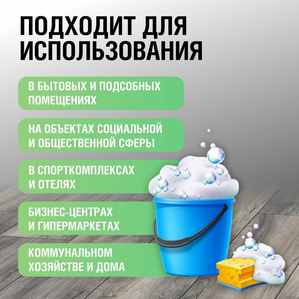 Концентрированное щелочное моющее средство для особо сильных загрязнений. Подходит для синтетических, виниловых и полимерных покрытий, линолеума, кафеля, асфальта, бетона, облицовочной плитки. Удаляет даже въевшиеся бытовые и уличные загрязнения, в том числе масло-жировые и органические. Используется в бытовых и подсобных помещениях, на объектах социальной и общественной сферы, спорткомплексах, отелях, бизнес-центрах, гипермаркетах, коммунальном хозяйстве и дома. Идеально для применения в поломоечных машинах и для ручной мойки, обладает приятным ароматом. Для профессионального применения.