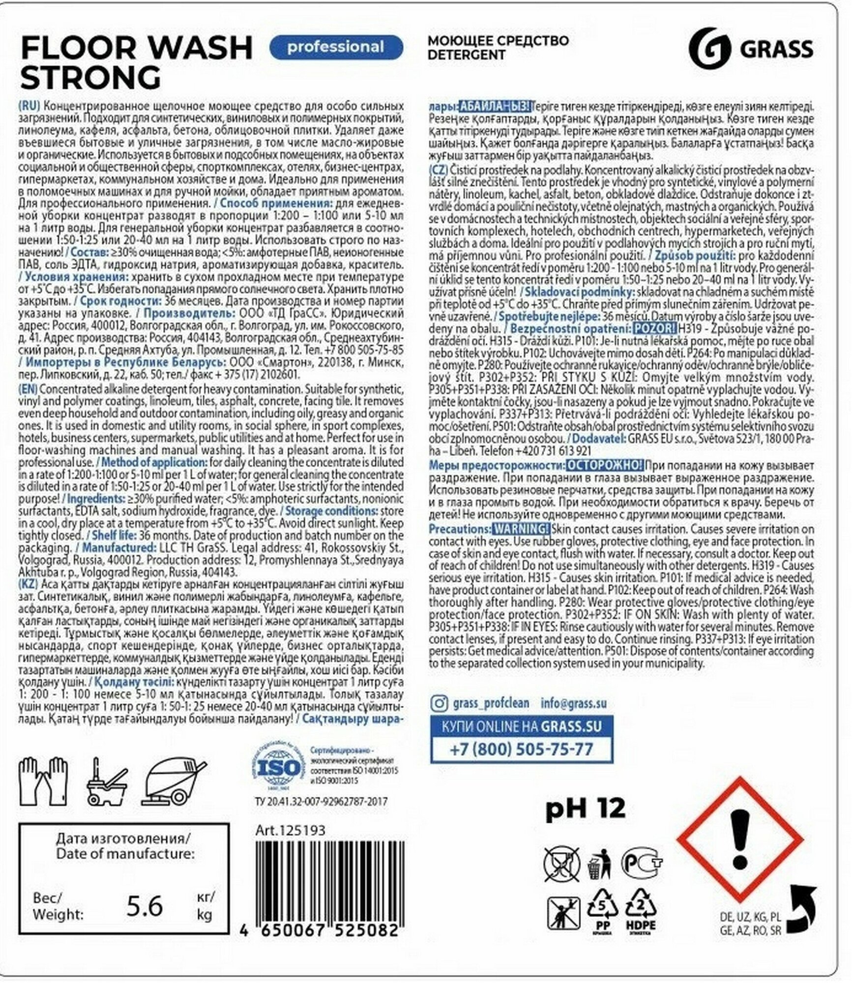 Сервис сравнения цен СкидкаГИД предлагает сравнить цены на товар «Щелочное средство для мытья пола "Floor wash strong" (канистра 21 кг) Grass (125520)»