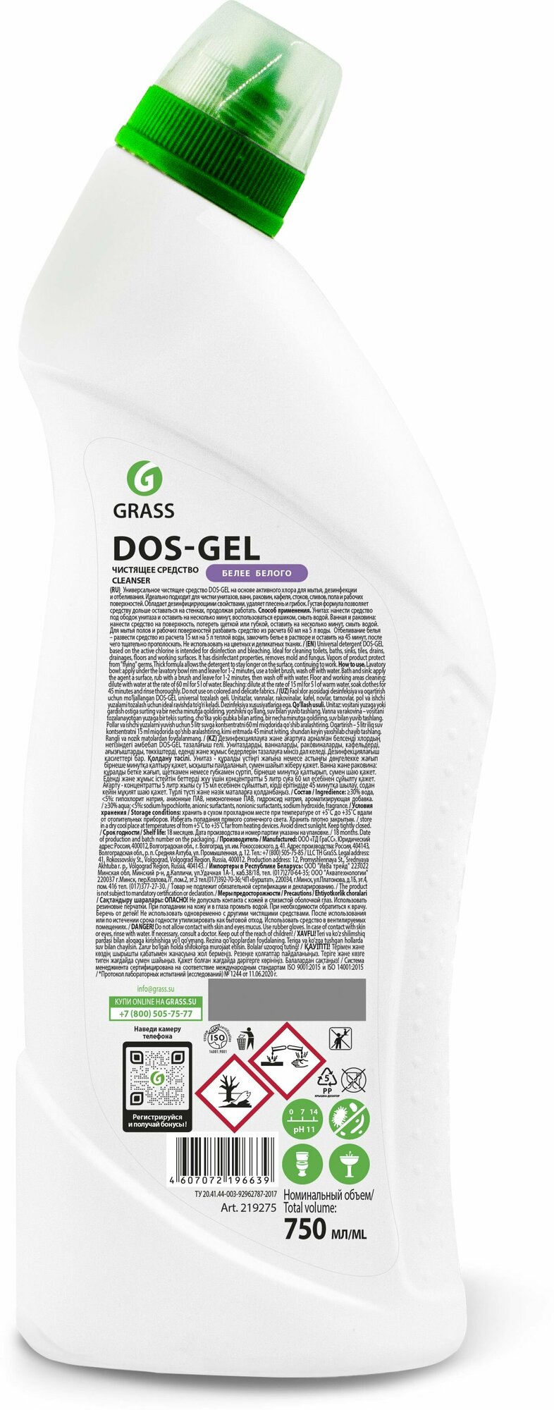 Универсальный чистящий гель "DOS GEL" (флакон 750 мл) Grass 219275