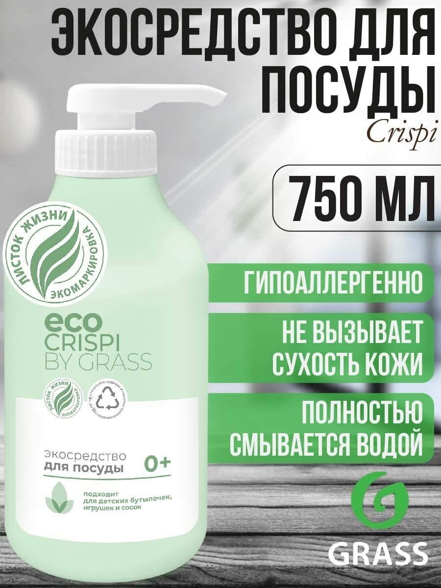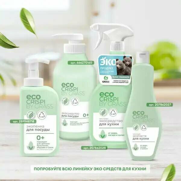 CRISPI Экопенка для мытья посуды детской посуды игрушек бутылочек и сосок (флакон 550мл) Grass 125701