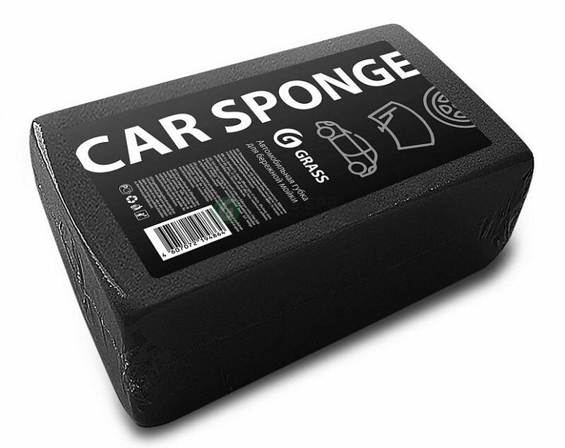 Губка автомобильная прямоугольная черная GRASS 190х110х55 мм( индивид. упак.) (IT-0581)