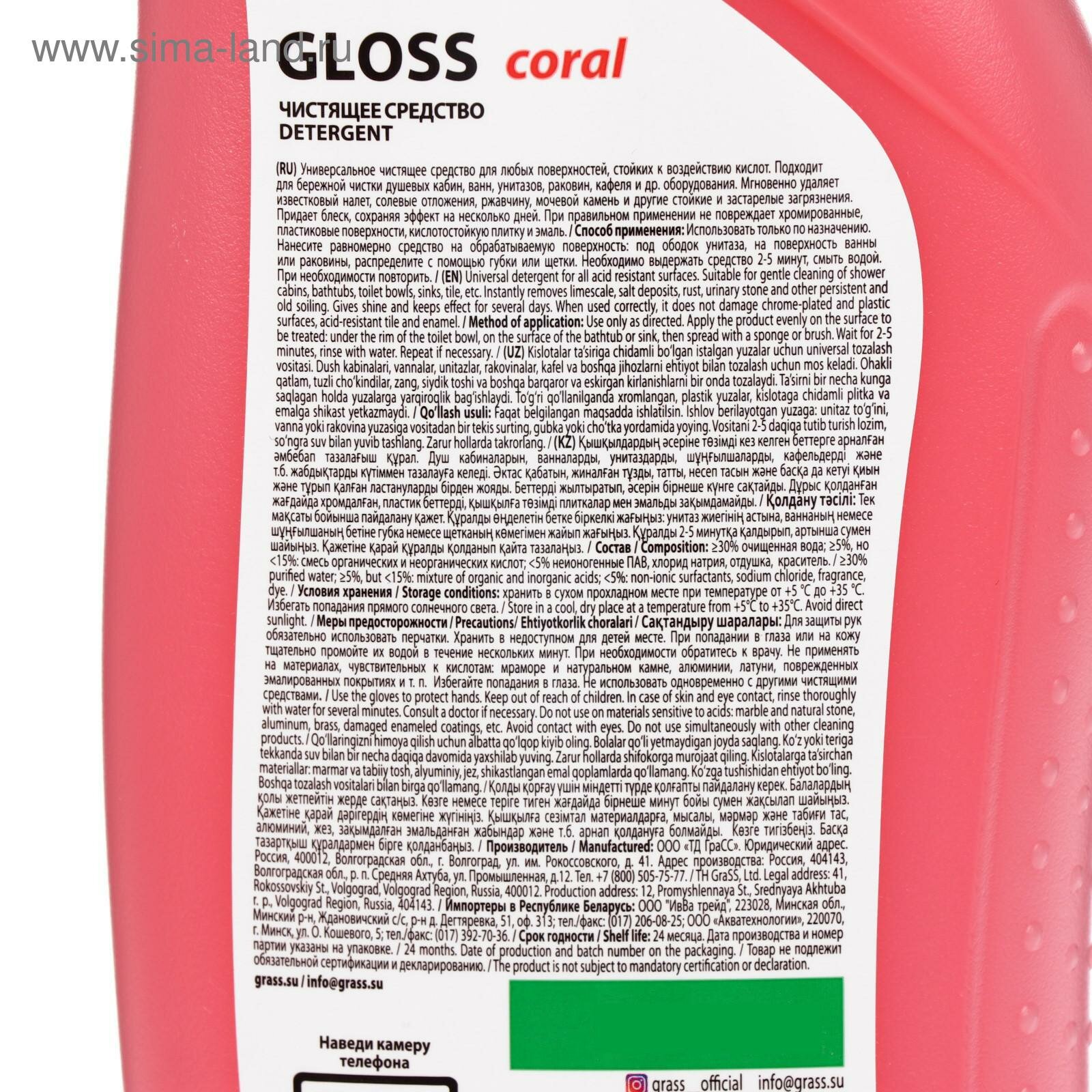Сервис сравнения цен СкидкаГИД предлагает сравнить цены на товар «Чистящий гель для ванны и туалета "Gloss coral" (флакон 750 мл) Grass (125547)»