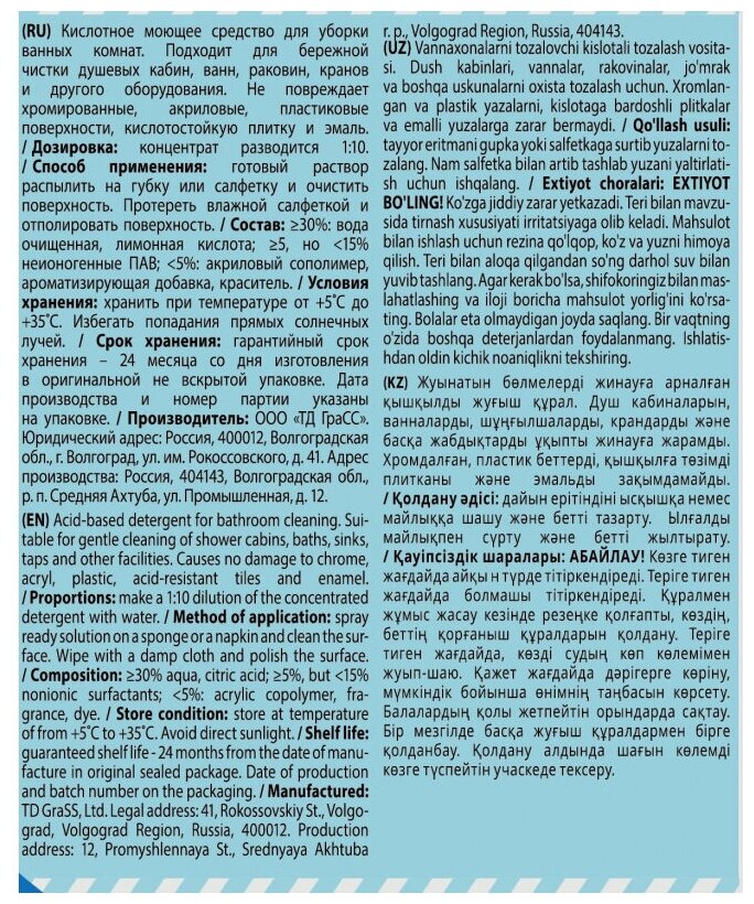 | Состав | ≥30%вода очищенная, лимонная кислота; ≥5, но |