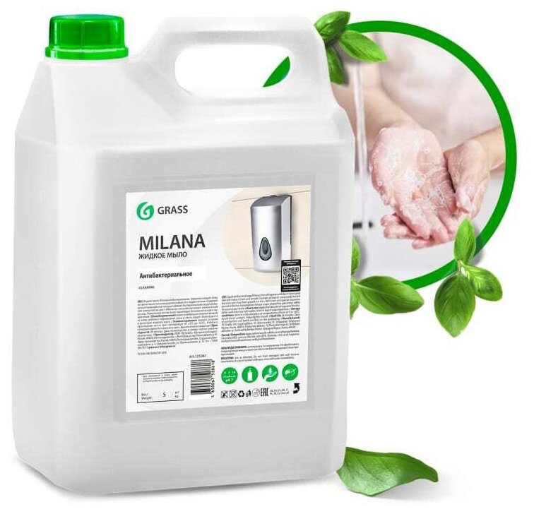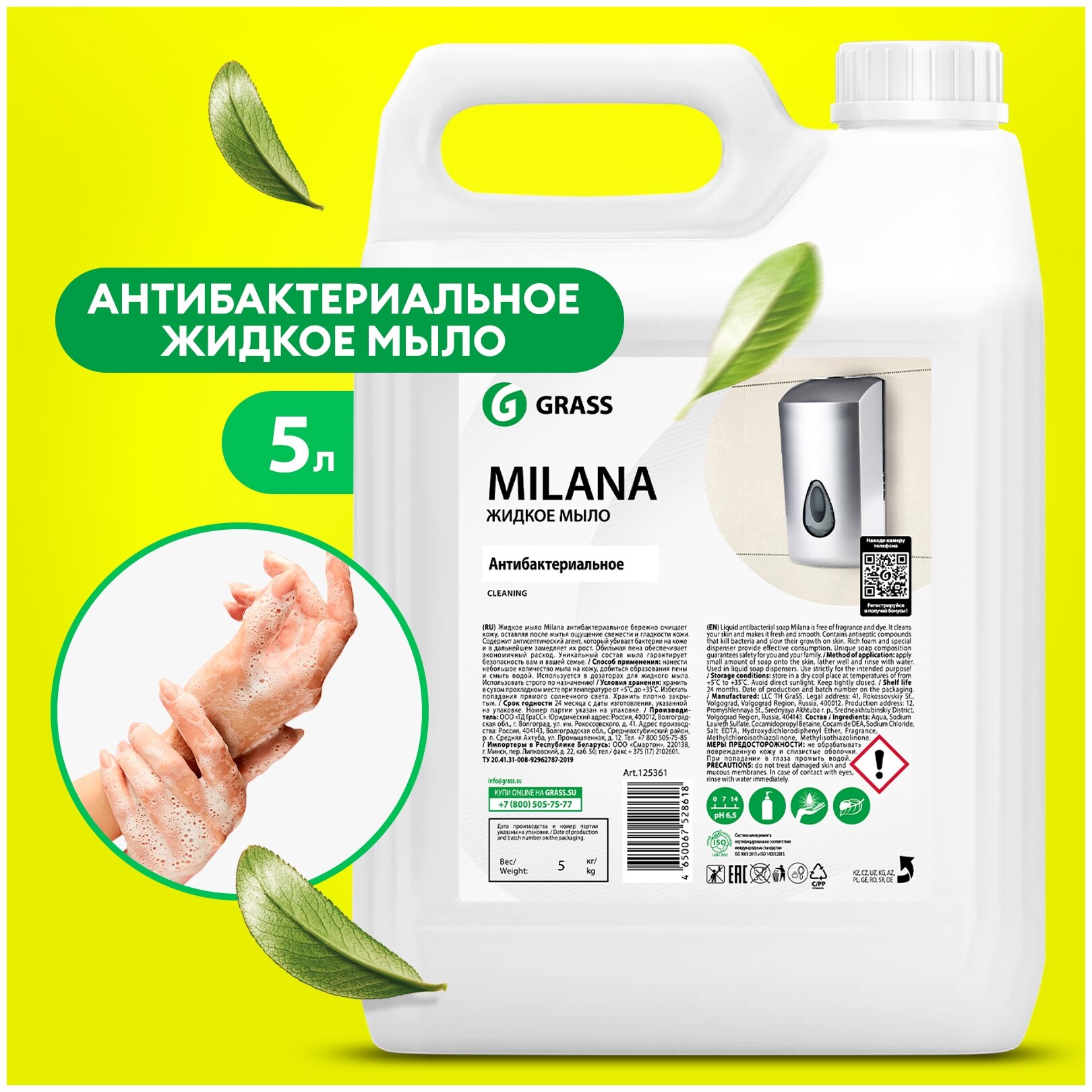Мыло жидкое "Milana антибактериальное" с дозатором (флакон 1000 мл) Grass 125435