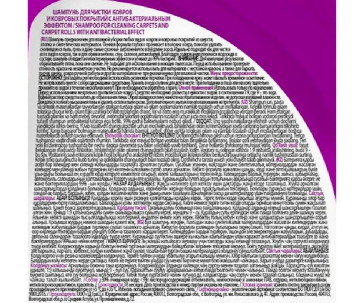 использовать только по назначению. Перед использованием желательно пропылесосьте ковер. Средство необходимо развести в емкости с водой, в соотношении 1:9, где 9 – это вода. Водный раствор средства взбить до образования пены. Образовавшуюся пену нанести на обрабатываемое изделие, не допуская излишней влажности. Дождаться полного высыхания пены и удалить остатки пылесосом. Дополнительного мытья или ополаскивания не требуется.