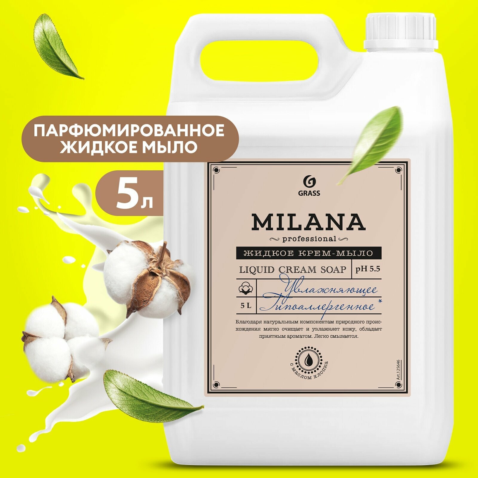 Крем-мыло жидкое увлажняющее "Milana Professional" (канистра 5кг) Grass (125646)