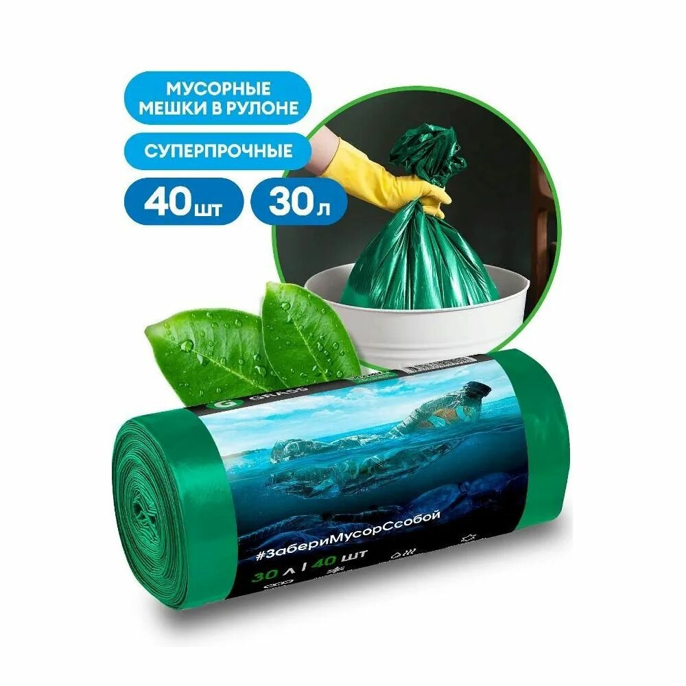 Сервис сравнения цен СкидкаГИД предлагает сравнить цены на товар «Мешок для мусора ПНД в рулоне 30 л. 46*55 7 мкр (зеленый) (рул. 40 шт) Grass PP-0027»