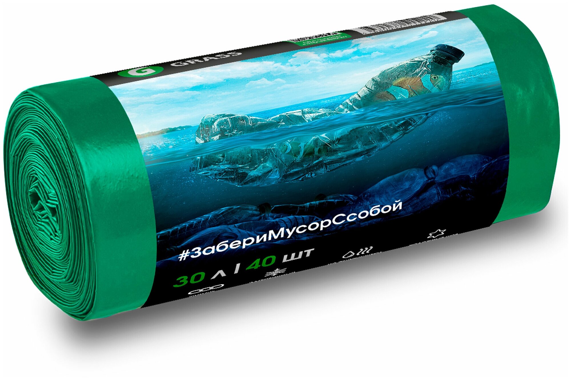 Мешок для мусора ПНД в рулоне 30 л. 46*55 7 мкр (зеленый) (рул. 40 шт) Grass PP-0027
