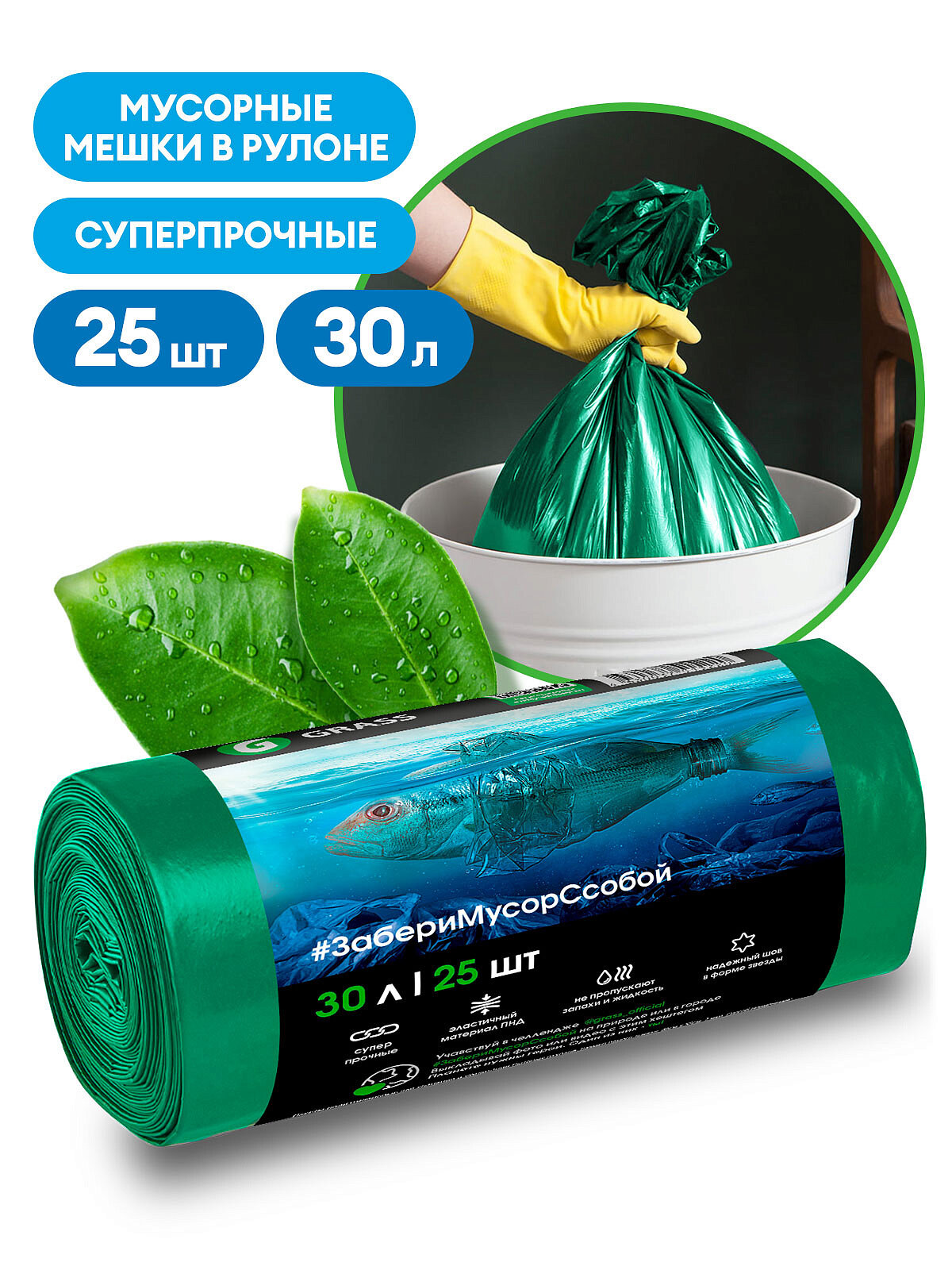 На сегодняшний день товар «Мешок для мусора ПНД в рулоне 30 л. 46*55 7 мкр (зеленый) (рул. 25 шт) Grass (PP-0026)» можно купить с кешбеком в 1 магазине: Яндекс.Маркет
