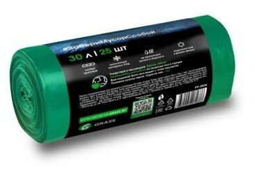 Сервис сравнения цен СкидкаГИД предлагает сравнить цены на товар «Мешок для мусора ПНД в рулоне 30 л. 46*55 7 мкр (зеленый) (рул. 25 шт) Grass (PP-0026)»