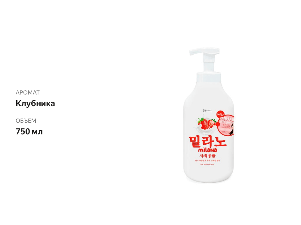 Сервис сравнения цен СкидкаГИД предлагает сравнить цены на товар «Milana пенка для душа с экстрактом клубники и молочными протеинами (флакон 750 мл) Grass 125464»