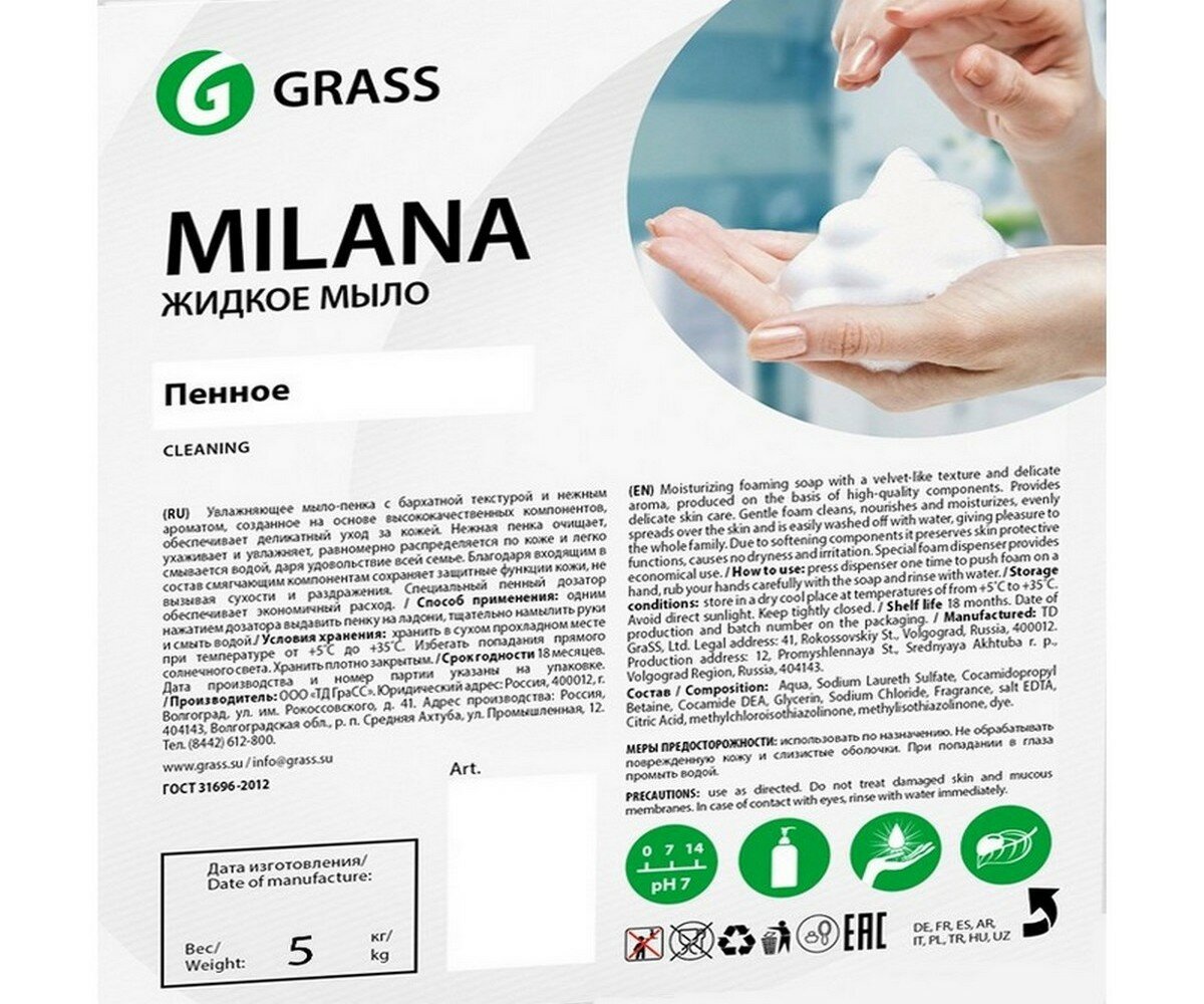 Жидкое мыло "Milana мыло-пенка морской бриз" (флакон 500 мл) Grass 125333
