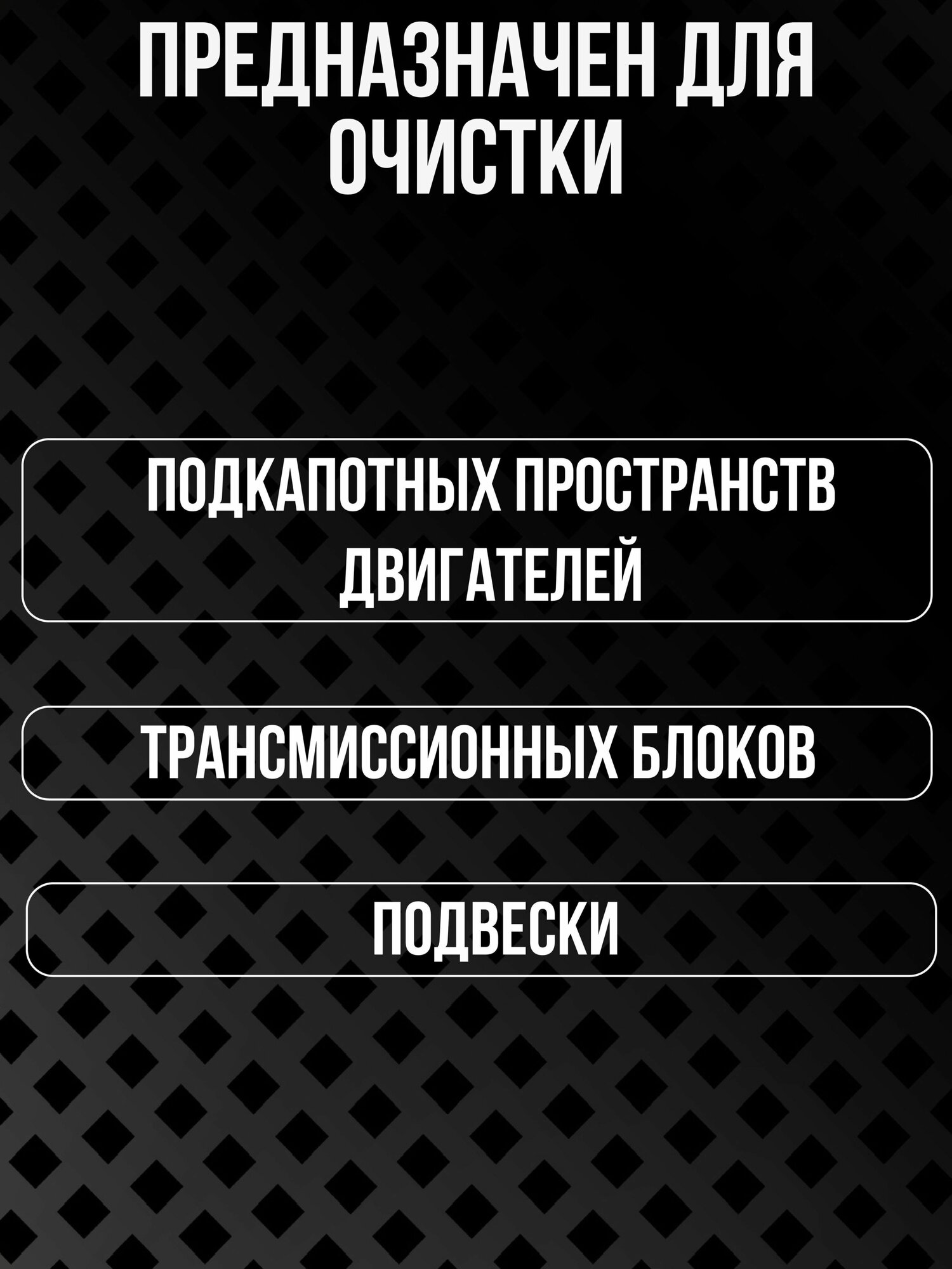 Motor (MT) - cредство для очистки подкапотных пространств двигателей автомобилей и мотоциклов, а также – трансмиссионных блоков и подвески. Основа состоит из растворителя с повышенным содержанием эмульгирующих и гидрофобных веществ. Легко растворяет и удаляет жирные и масляные пятна с механических деталей. Не оставляет разводов и не деформирует детали из резины, алюминия и пластика. Не требует разведения.