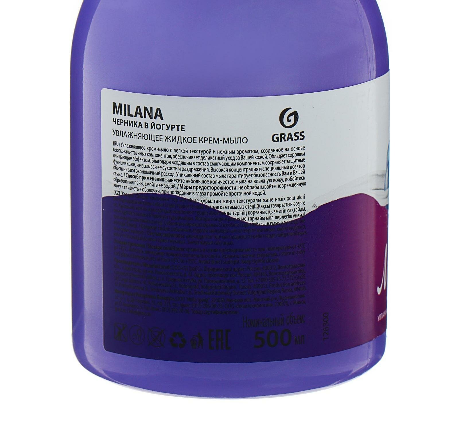 Сервис сравнения цен СкидкаГИД предлагает сравнить цены на товар «Крем-мыло жидкое увлажняющее "Milana черника в йогурте" (флакон 1000 мл) Grass 126301»