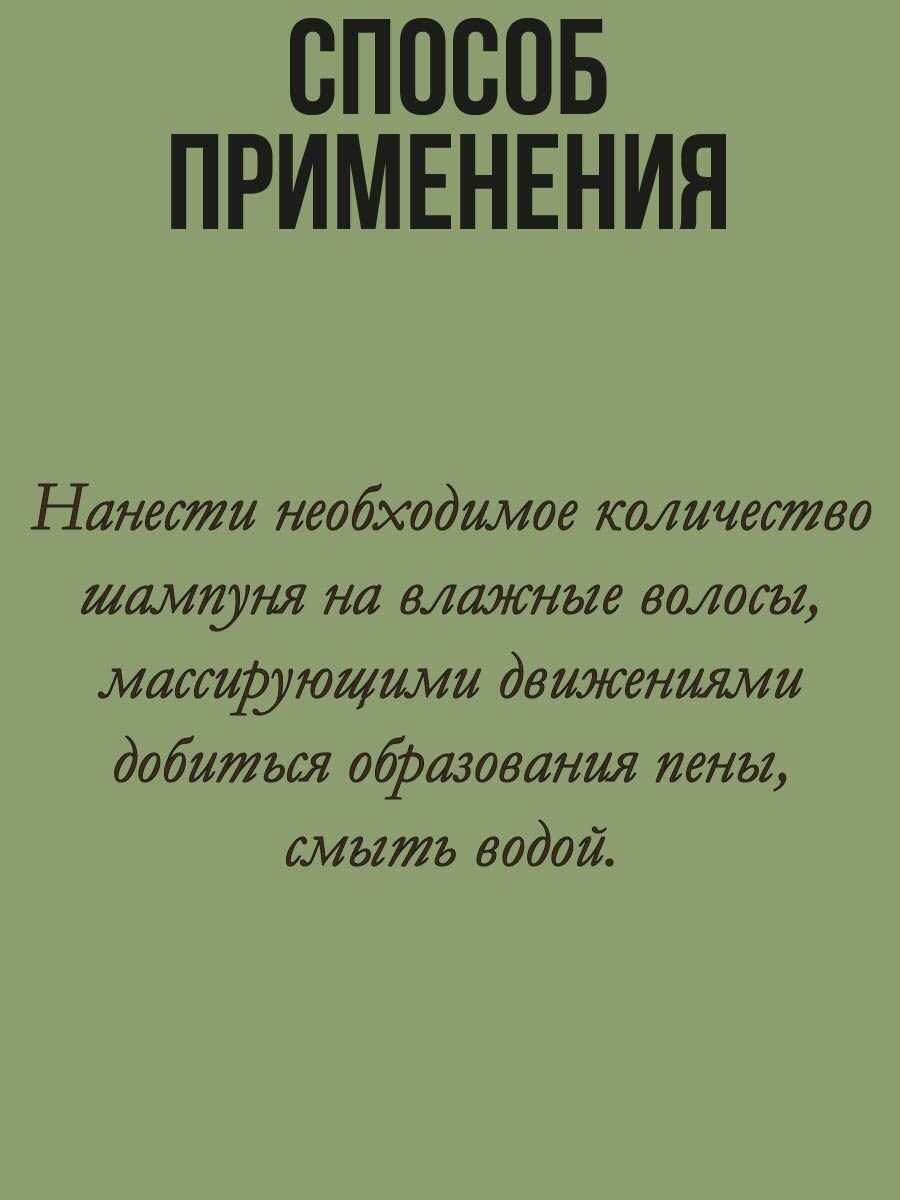 Нанести необходимое количество шампуня на влажные волосы, массирующими движениями добиться образования пены, смыть водой.